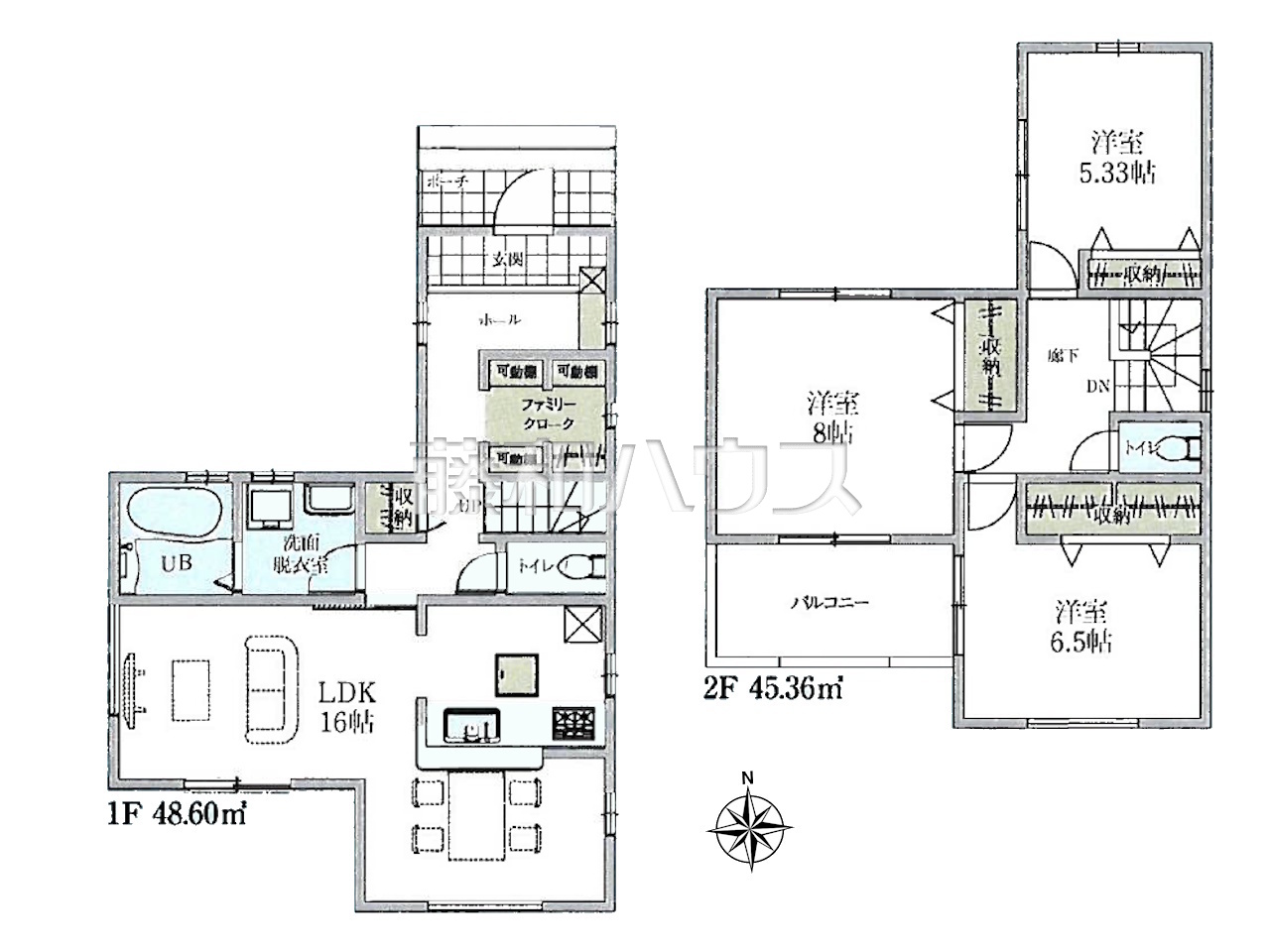 | 土地面積 | 123.56m² | 建物面積 | 93.96m² |
