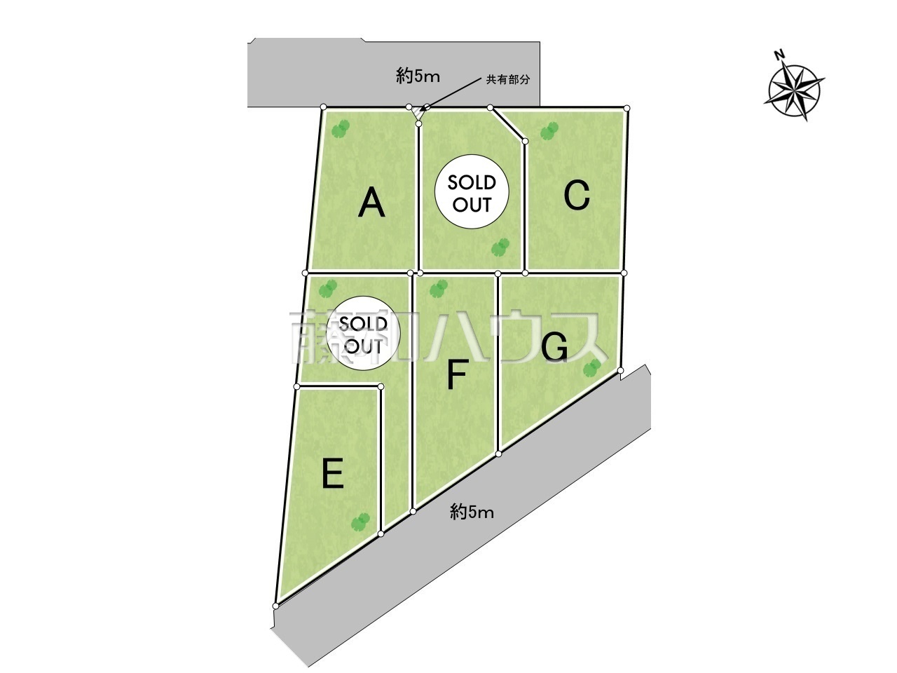 | 特記事項 | A、B号棟:共有部分あり ゴミ収集:戸別収集 F、G号棟:前面に電柱あり 東側通路有 | ||