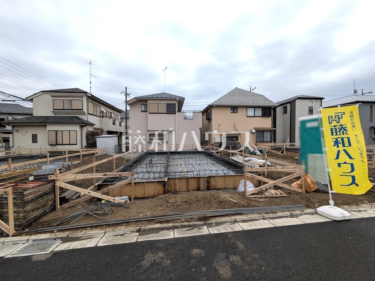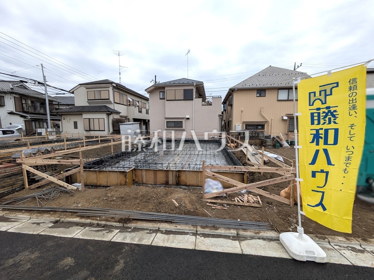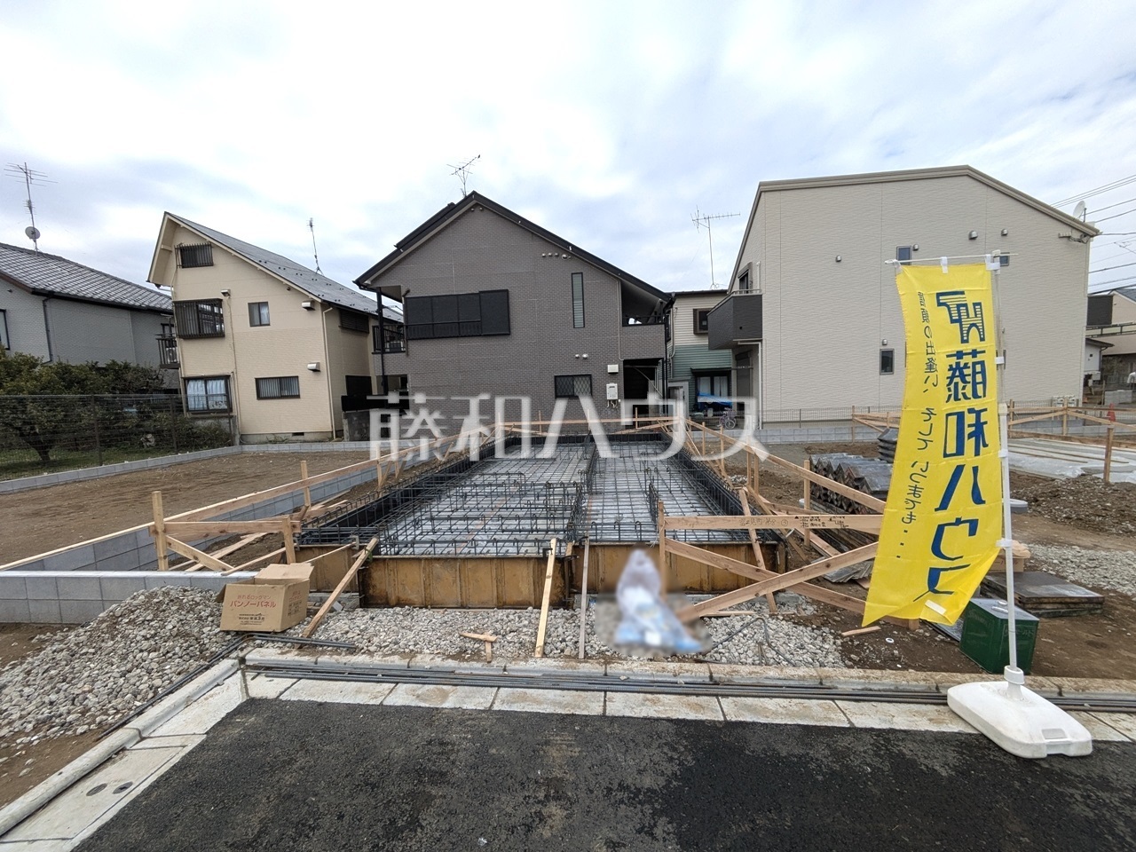 ベタ基礎【調布市富士見町3丁目】 建物を「面」で支える耐震性に優れたベタ基礎。建物の底面全体が鉄筋コン…
