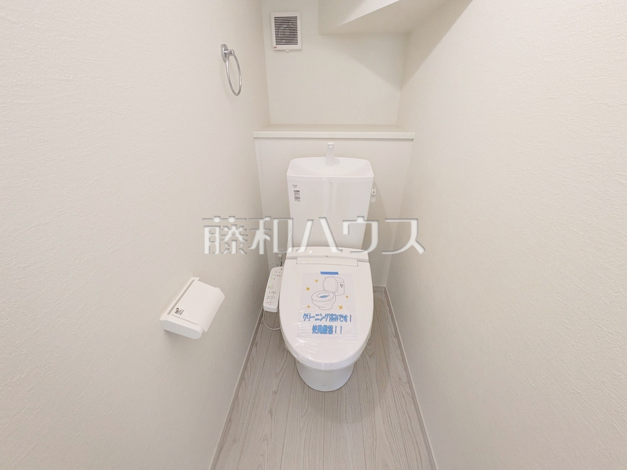 2号棟 トイレ 【春日井市下津町】トイレはいつまでも清潔な空間を保てるように、目に留まるだけではなく、汚れを拭き取り易いフロアと壁紙にしました。