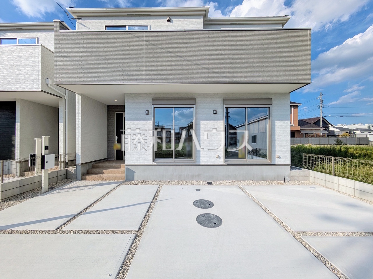 1号棟 外観 【春日井市下津町】モノトーンを中心とした配色の現代的なデザイン。直線的ですっきりとしたスクエアなデザインが、お客様のお住まいを都会的に印象づ...