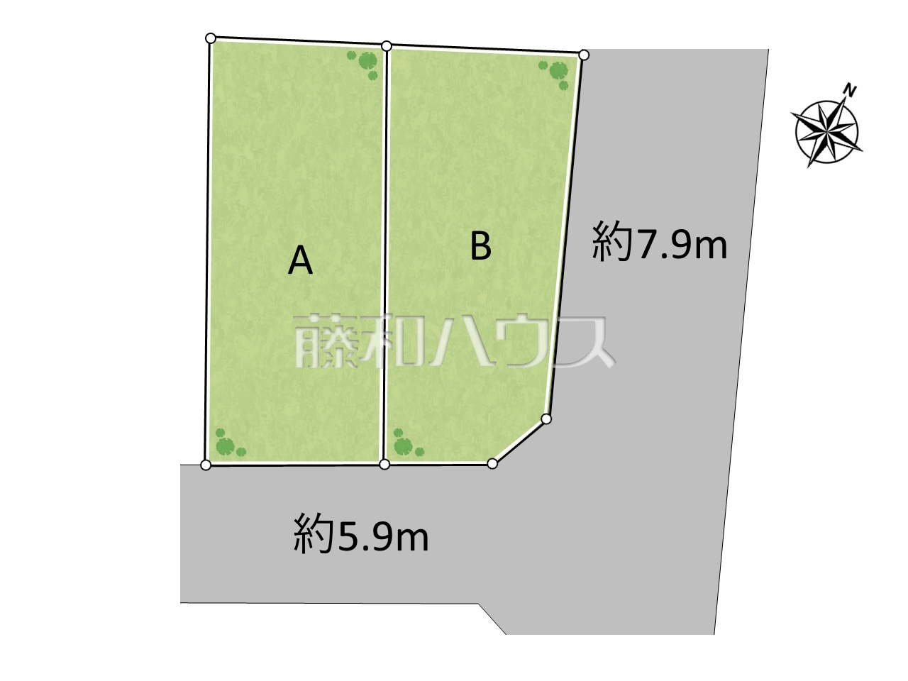 | 接道 | 南東5.9m公道 北東7.9m公道 | ||