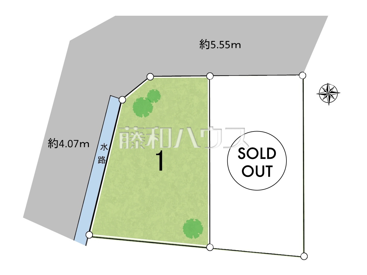 | 接道 | 接道状況:角地 北5.55m公道 西4.07m公道 | ||