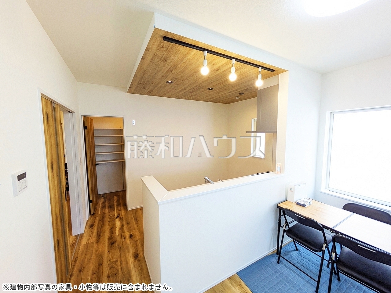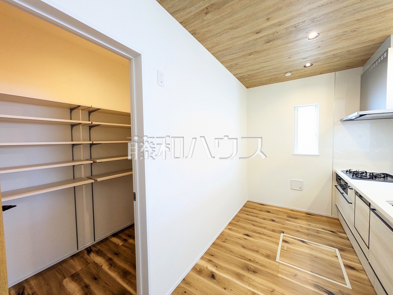 ●キッチンには大型パントリーがあり、食品などをしっかりストックできます。