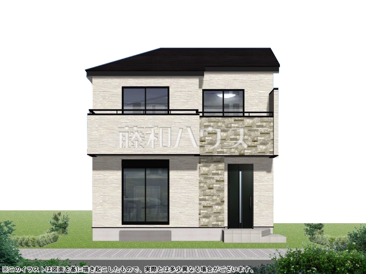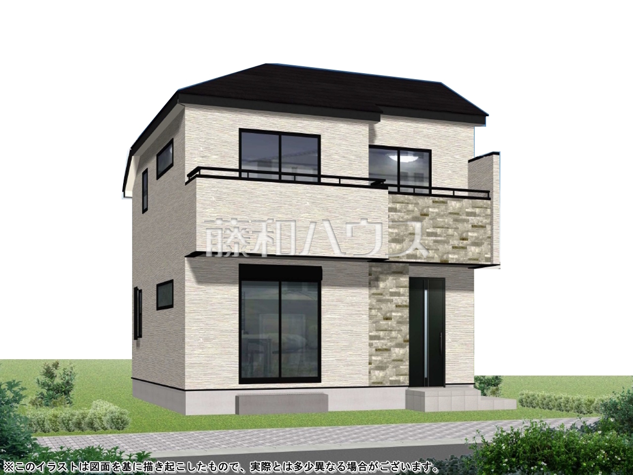 - 完成予想図については、外構、植栽、外観等実際のものとは多少異なることがあります。