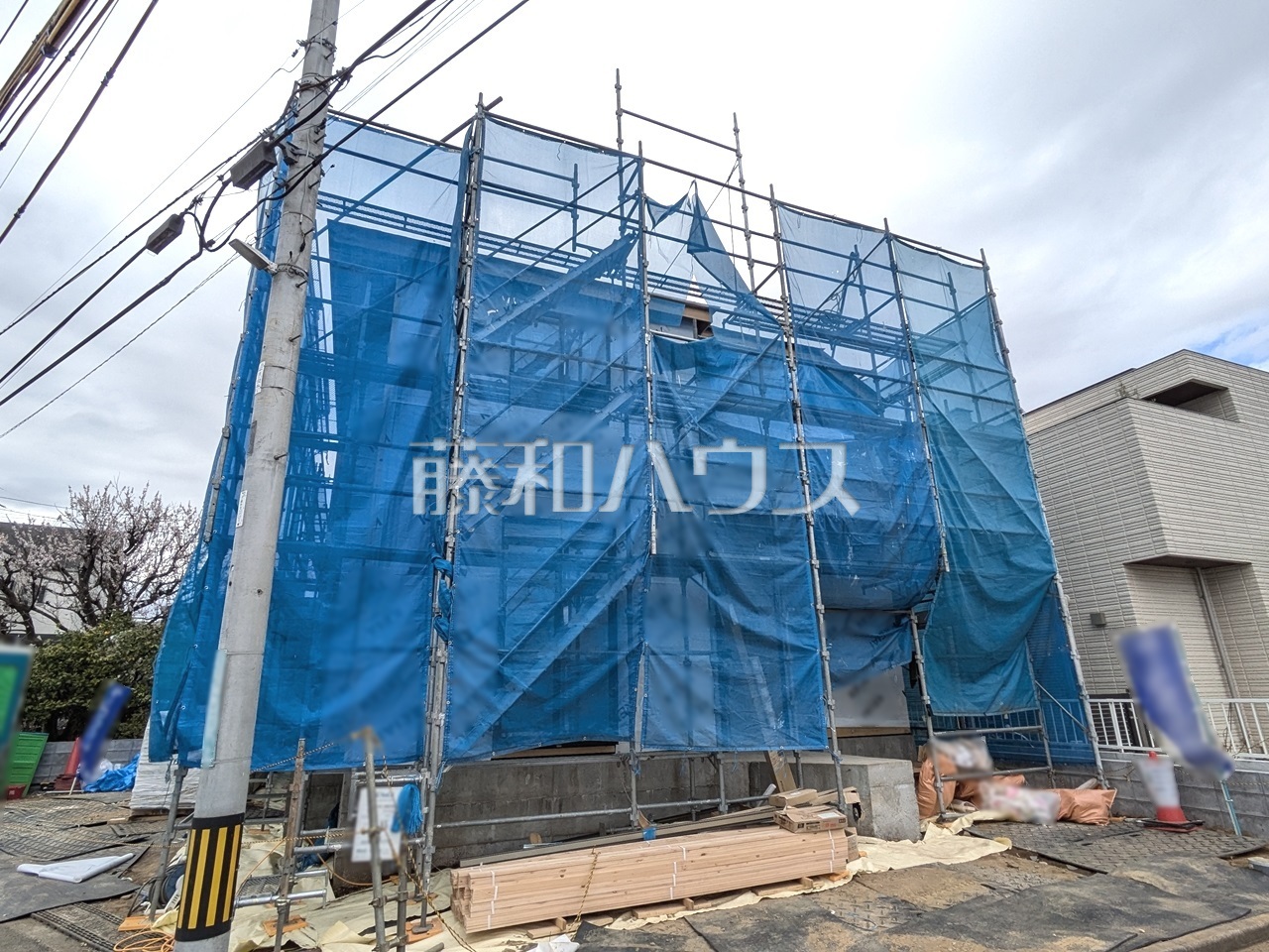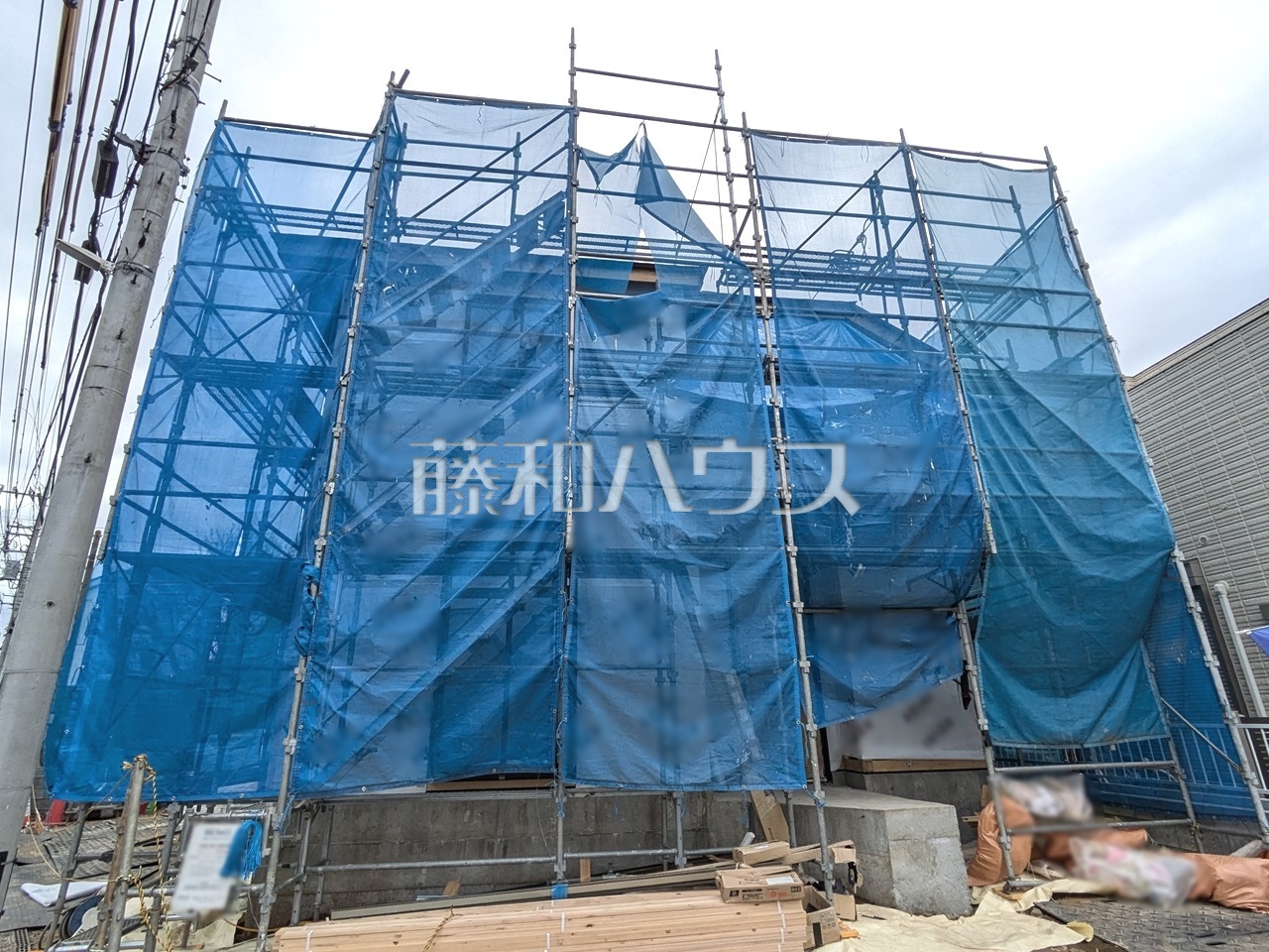 接道状況および現場風景 【日野市万願寺1丁目】 ここに住む方を想像して、着々と建築しております!