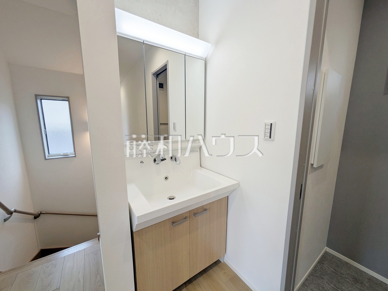 洗面室 【日野市西平山5丁目】 洗面室は、急いでいる朝でも二人で使える広さになっております。