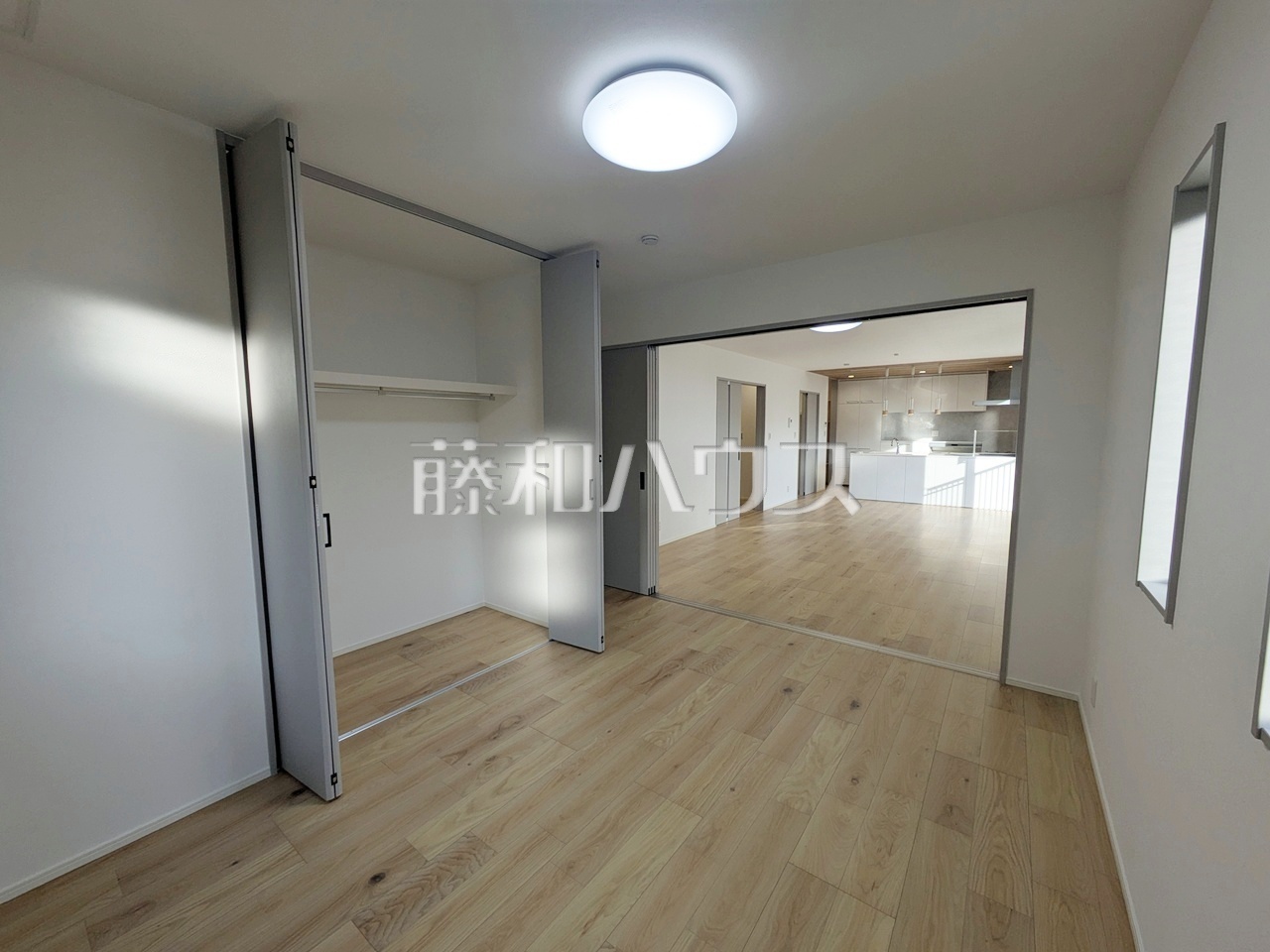 リビング 【日野市西平山5丁目】 リビングと隣接した居室の間仕切りは、シーンに合わせて引き戸を開放し、一つの大きな空間にできる仕様です。