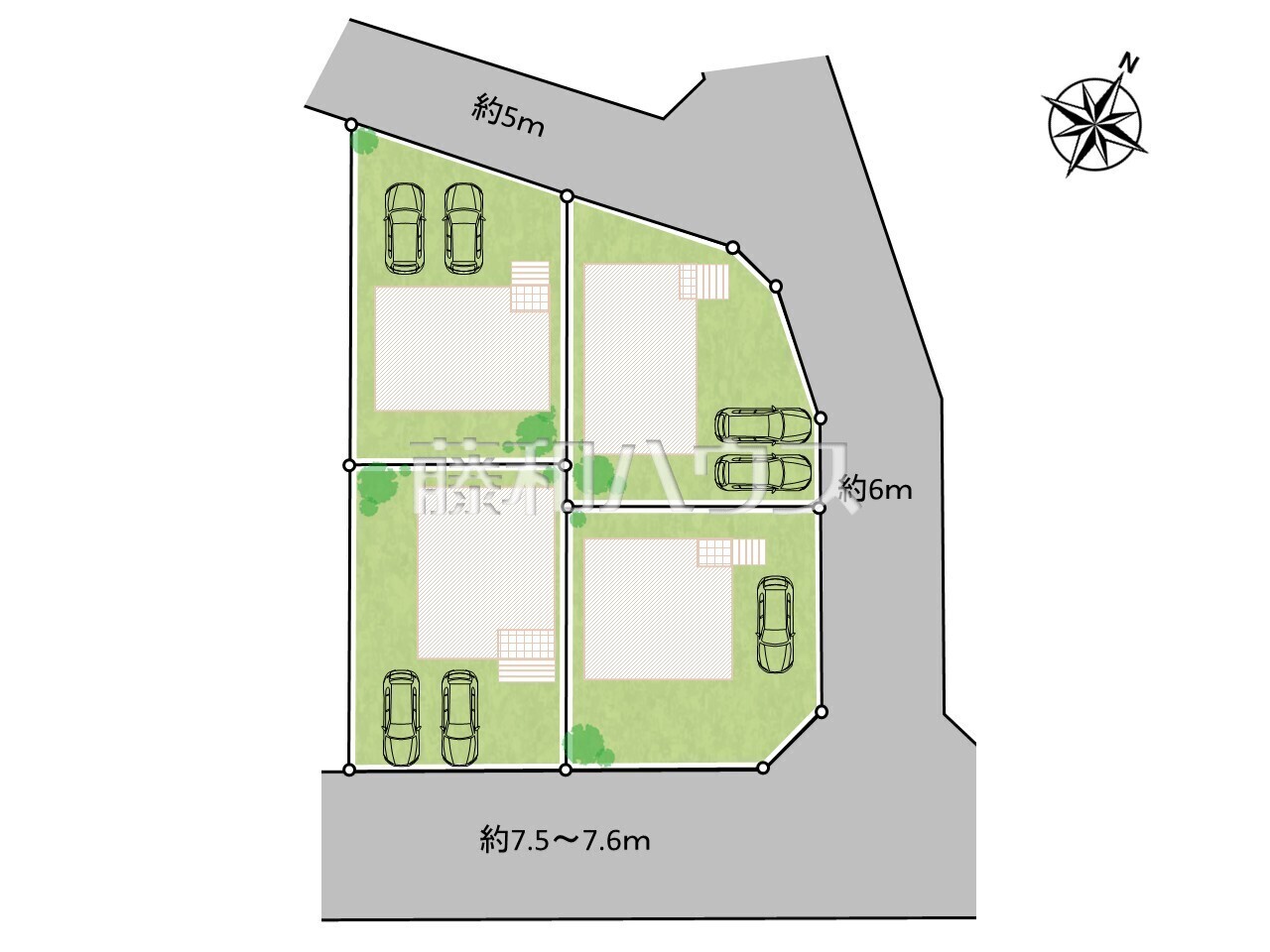 | 特記事項 | 1号棟敷地北側に以前井戸がありました 4号棟敷地南側に以前洞がありました 南東側幅員7.5~7.6m接道 | ||