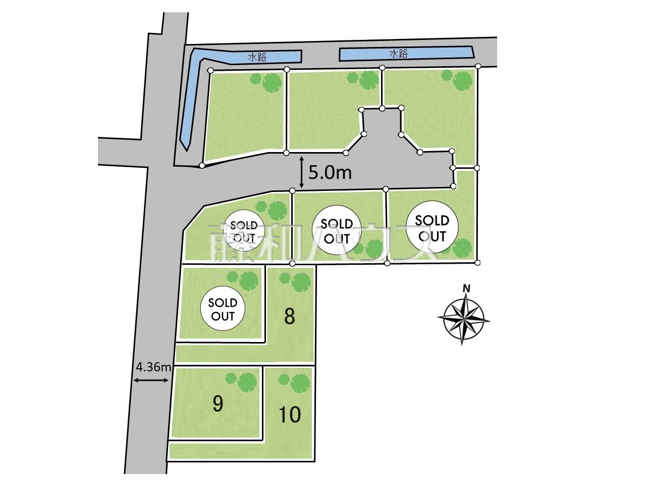 | 特記事項 | 西側約4.36m道路後退部分は市に譲地予定で持分無、後退後の幅員です 土地面積に道路後退部分を含みません 8号棟・10号棟は土地面積に路地上部分を含みます | ||