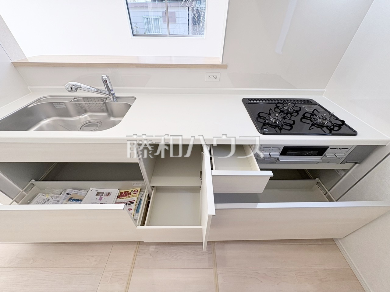 出し入れスムーズ、腰への負担も軽減。大容量スライド収納キッチンで、毎日の料理をもっと軽やかに。 キッチン 【清瀬市中里1丁目】