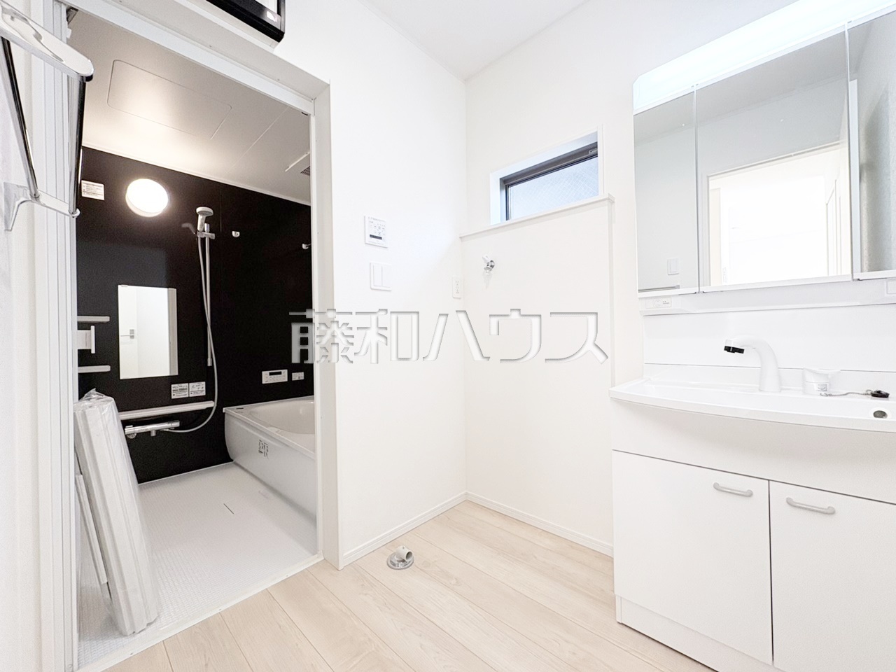 『洗面室も1坪の開放感』お風呂上がりも着替えがスムーズ!家族が並んでも余裕のある、ゆとりのサニタリー空間。 洗面室 【清瀬市中里1丁目】