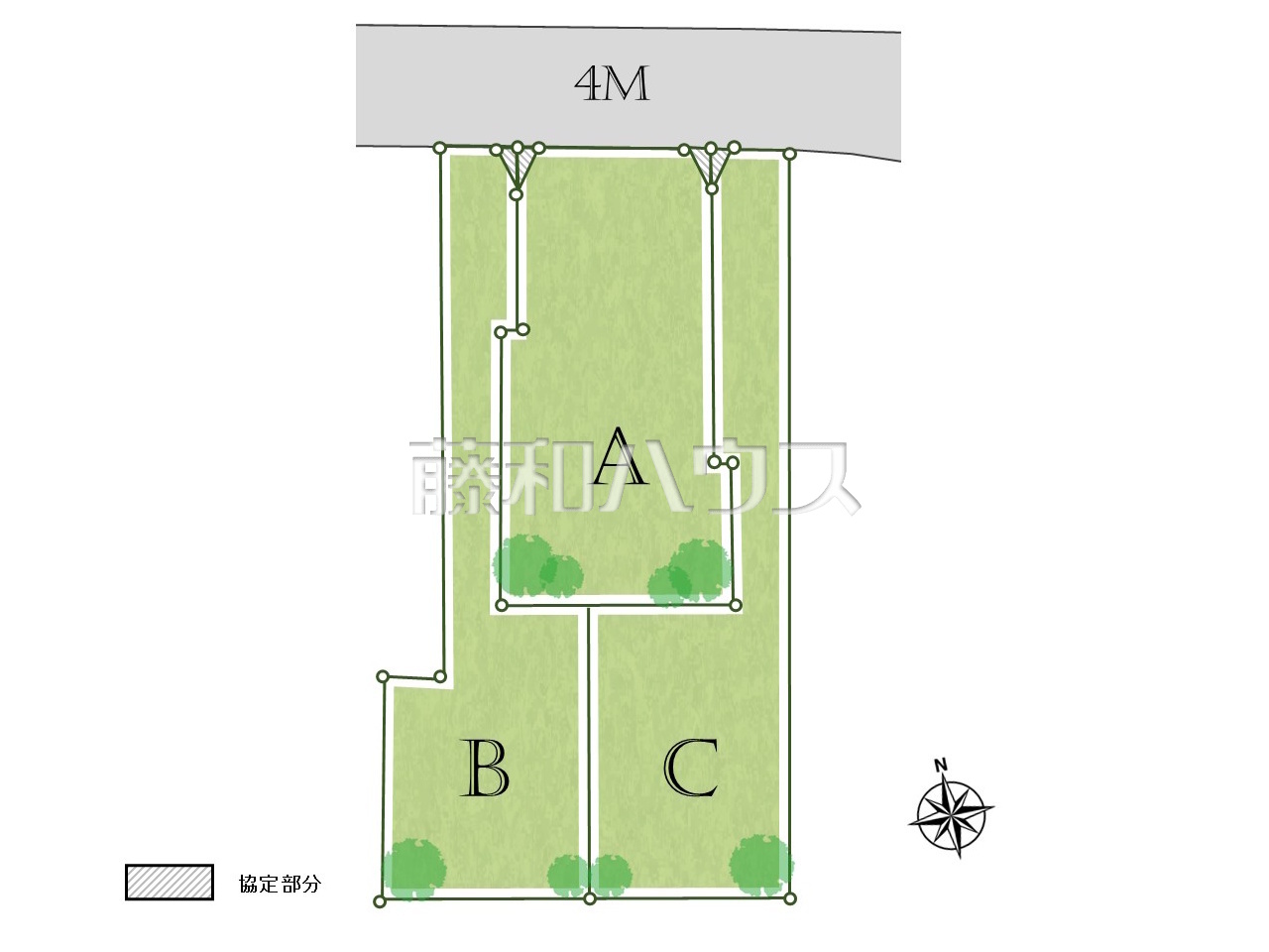 - 土地(建築条件なし)の「建物プラン例」等を掲載している時、その設計プランは特定の建築請負会社によるもので、当該建築請負会社以外で建築した場合、同様のものが同価格で建築出来るとは限りません。また建築請負会社を特定するものではありません。