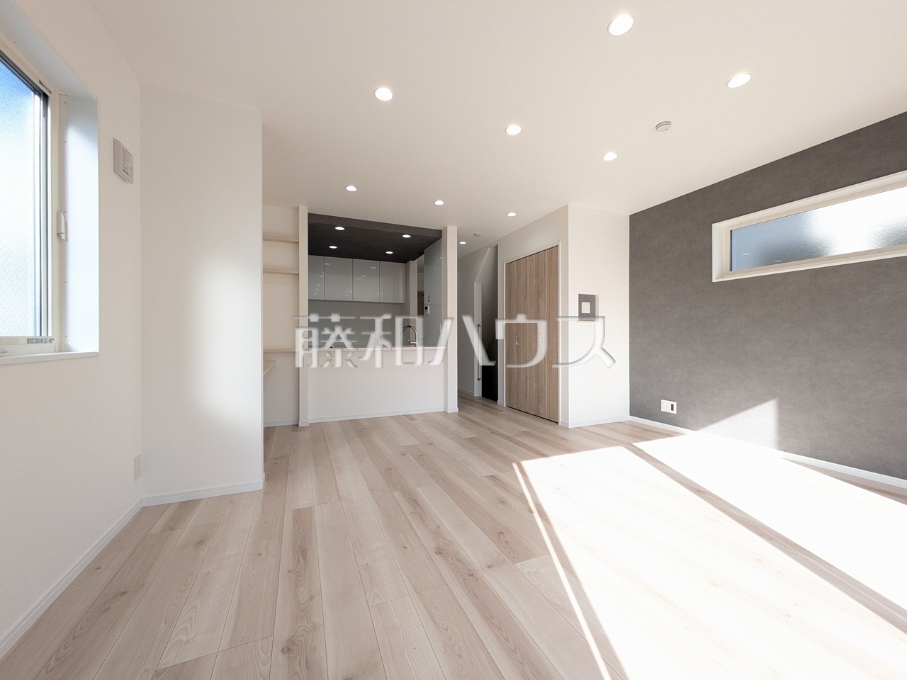太陽の光が入り込む明るいLDKはゆとりの19帖以上