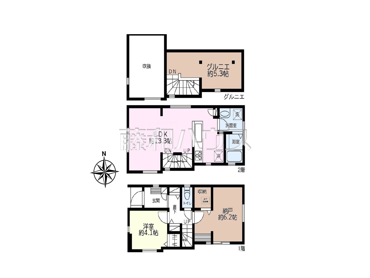 | 土地面積 | 43.97m² | 建物面積 | 56.54m² |