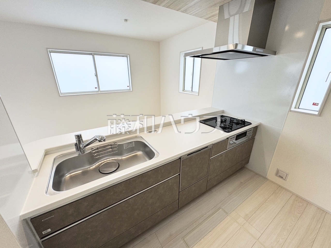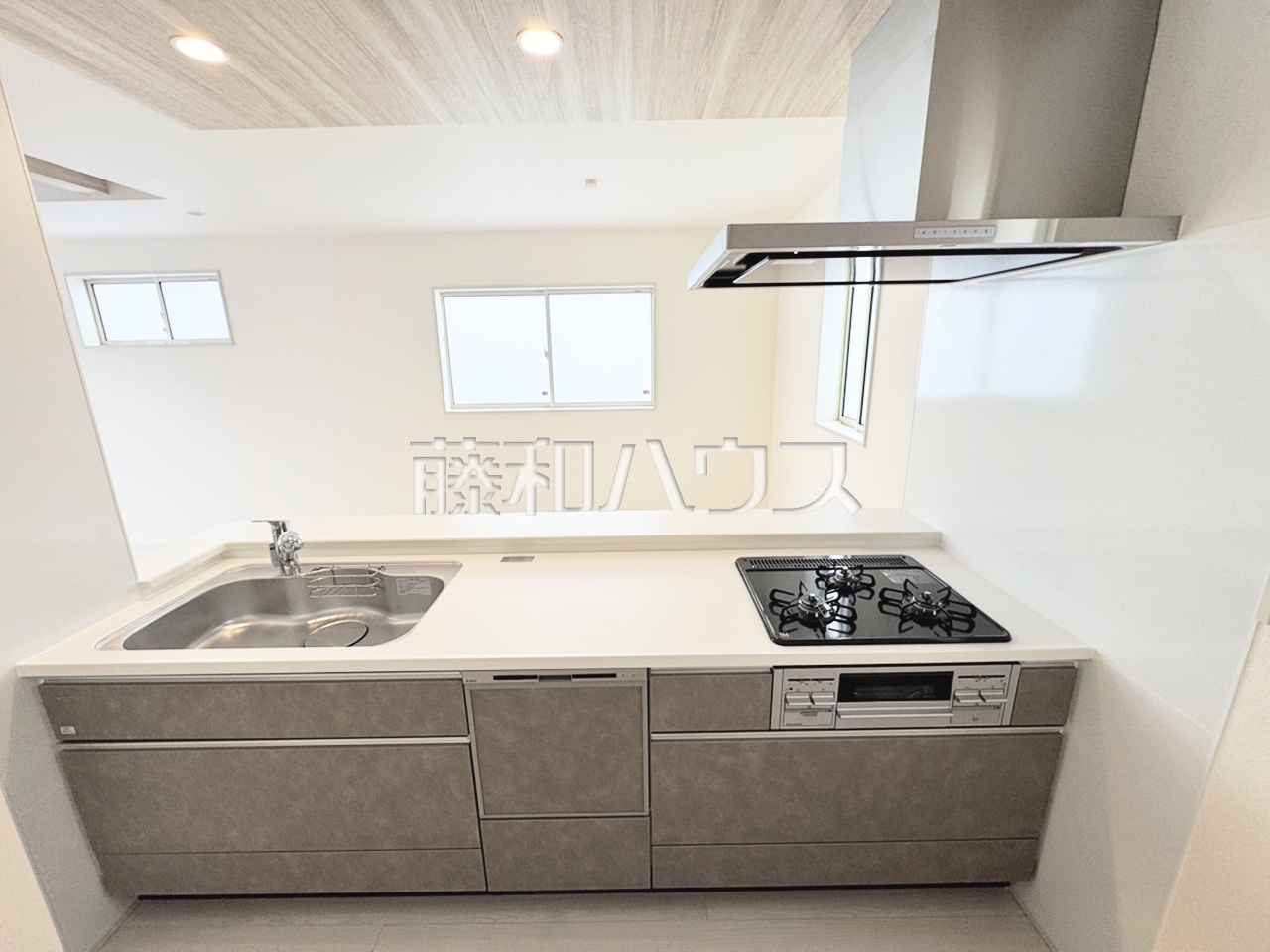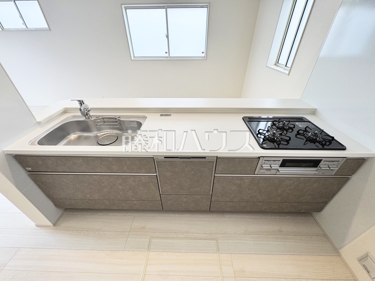 1号棟 キッチン 【沖縄市美里仲原町】 使いやすくスタイリッシュなシステムキッチンには、毎日お使いになる方の視点が存分に活かされています。