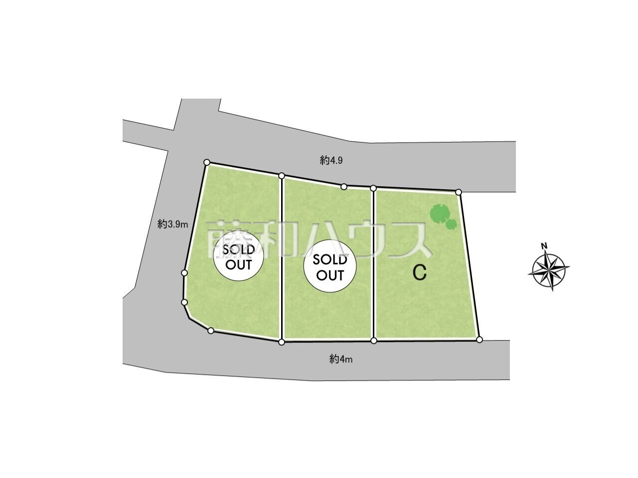 | 接道 | 西3.9m公道 北4.9m公道 南4m公道 | ||