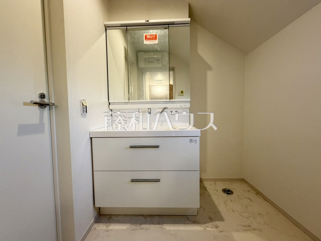 ≪3号棟 洗面室≫三面鏡付きの洗面台。鏡の裏にも収納があり、歯ブラシや化粧品等もすっきり収納できます。 【世田谷区北烏山9丁目】
