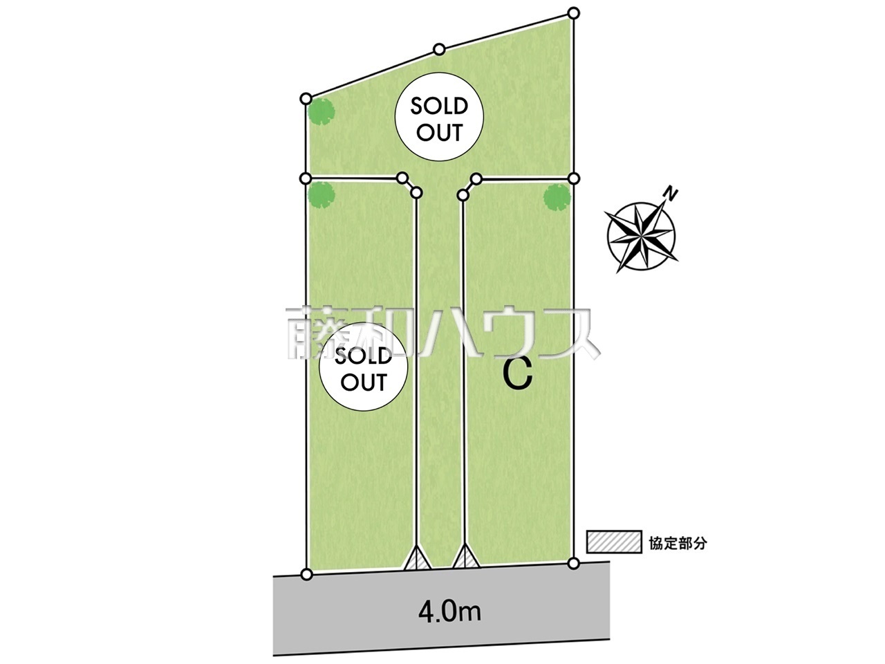 - 土地(建築条件なし)の「建物プラン例」等を掲載している時、その設計プランは特定の建築請負会社によるもので、当該建築請負会社以外で建築した場合、同様のものが同価格で建築出来るとは限りません。また建築請負会社を特定するものではありません。