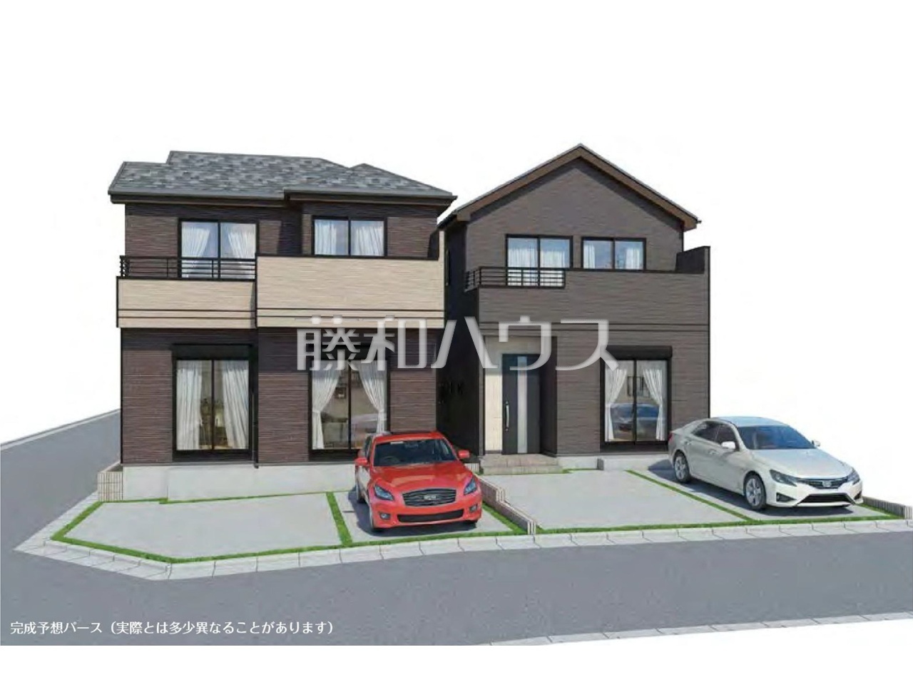 - 完成予想図については、外構、植栽、外観等実際のものとは多少異なることがあります。