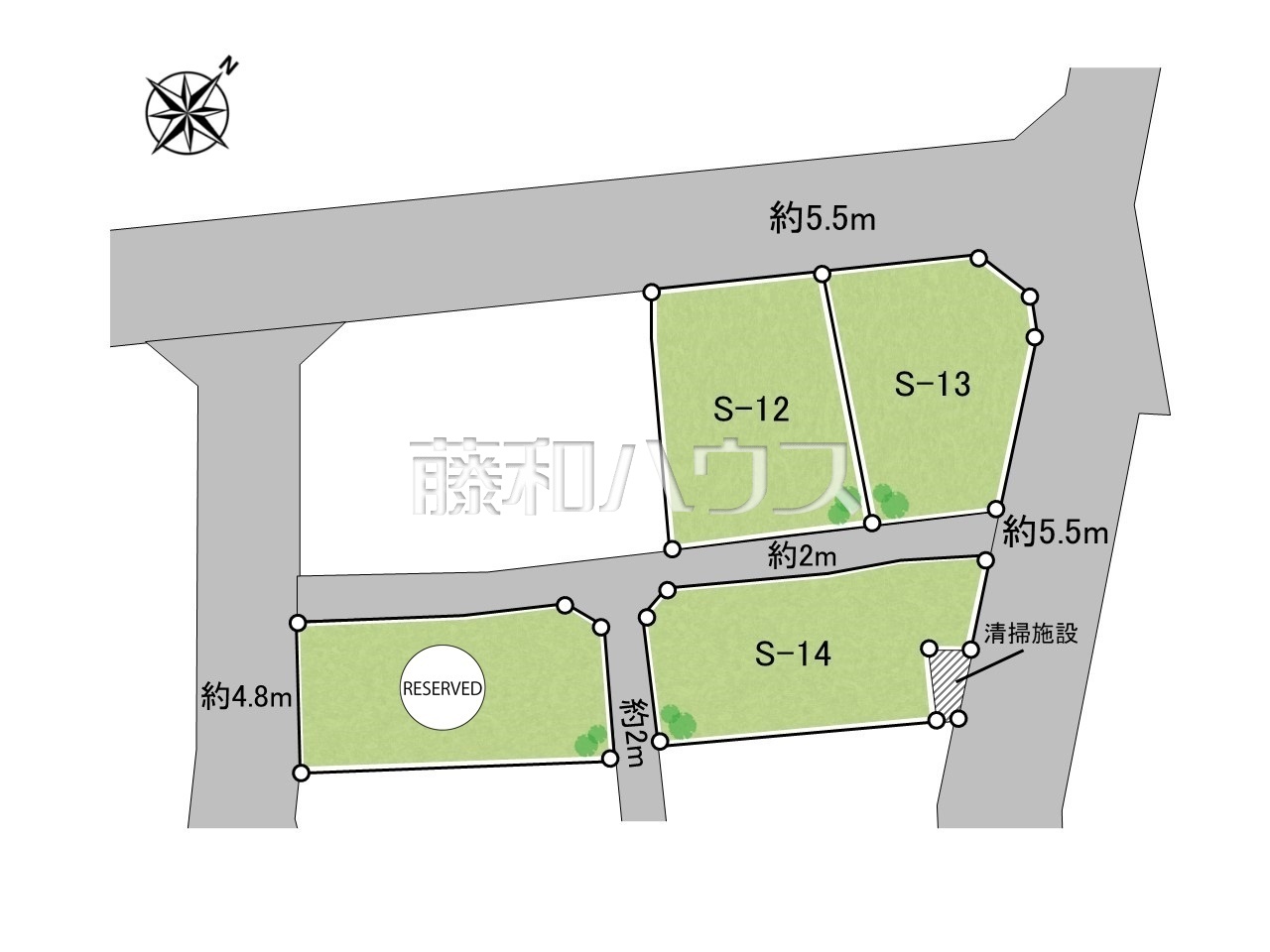| 接道 | 北西5.5m公道 北東5.5m公道 南西4.8m私道 | ||