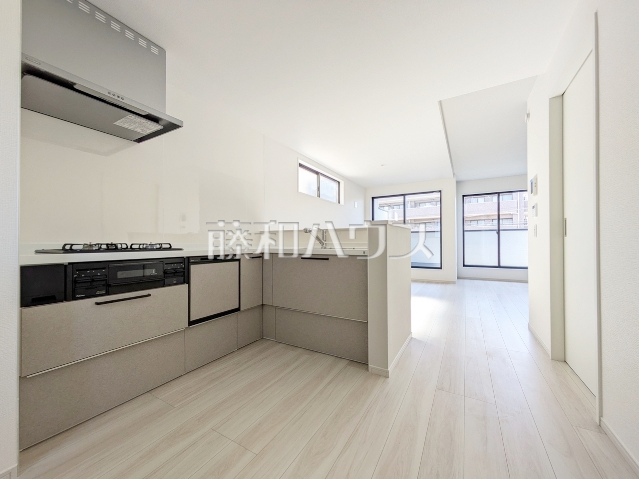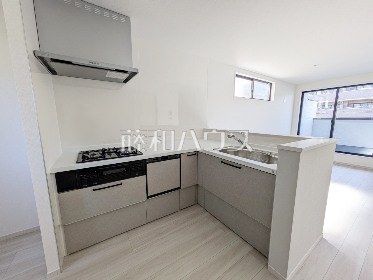 L字型キッチンは油跳ねや水が飛び散る範囲を抑えることができるため、掃除がしやすくなります。 【和光市新倉2丁目】