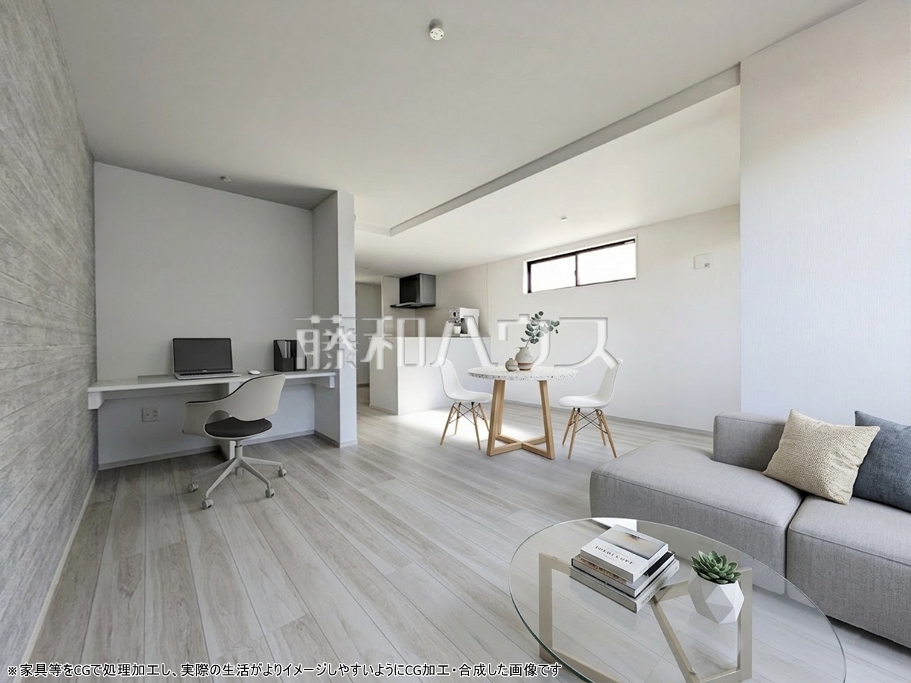 家族が揃って食事できるゆとりある大きさのLDK約18.5帖 ※配置してある家具や小物はCGによるイメージです。家具・小物は販売価格に含まれません。【和光...