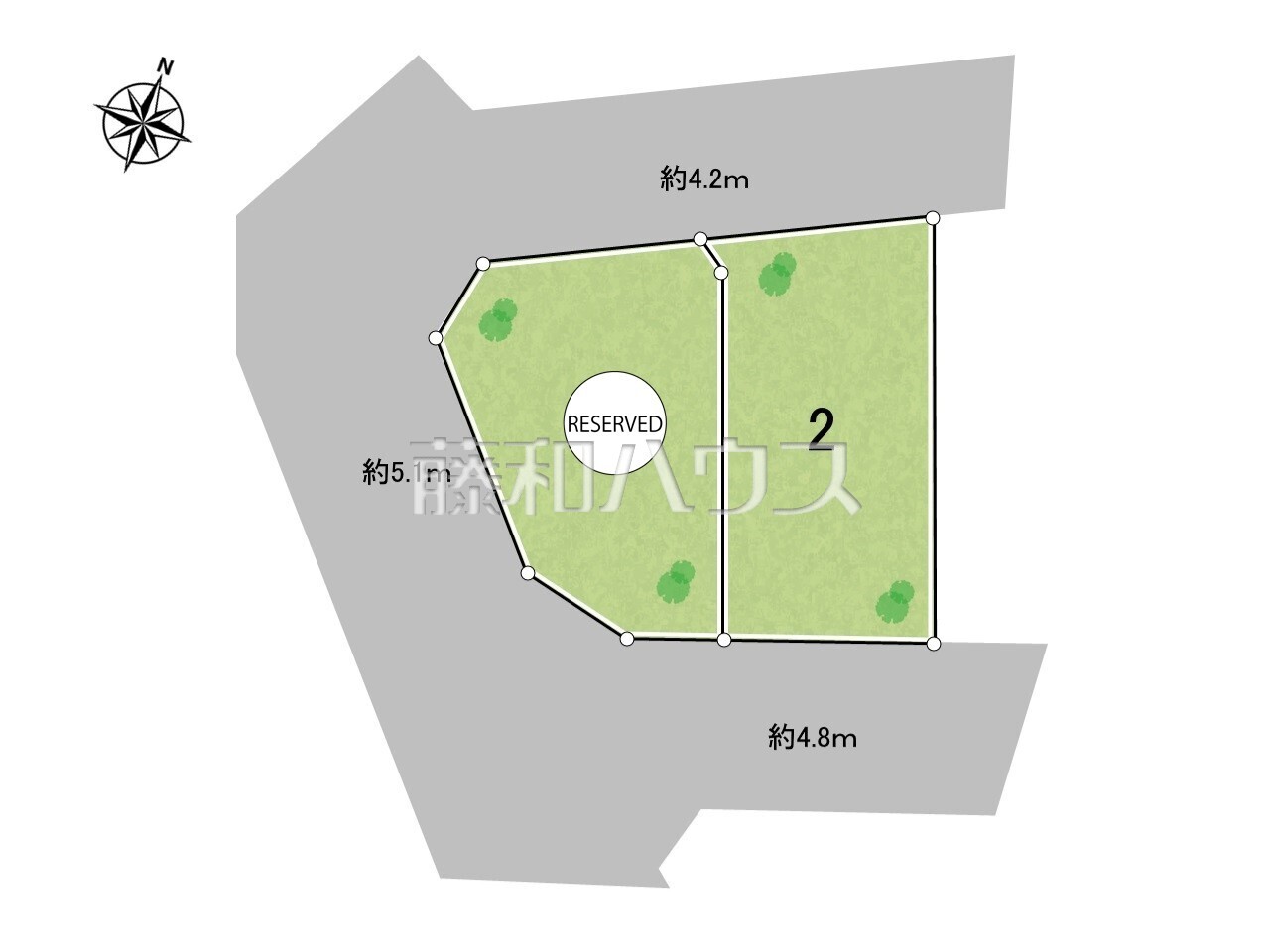 | 接道 | 西5.1m公道 北4.2m私道(位置指定あり) 南4.8m私道(位置指定あり) | ||