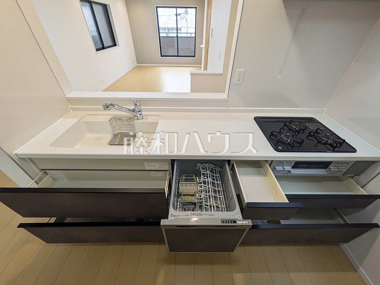 1号棟 使いやすくスタイリッシュなシステムキッチンには、毎日お使いになる方の視点が存分に活かされています。 【和光市諏訪】