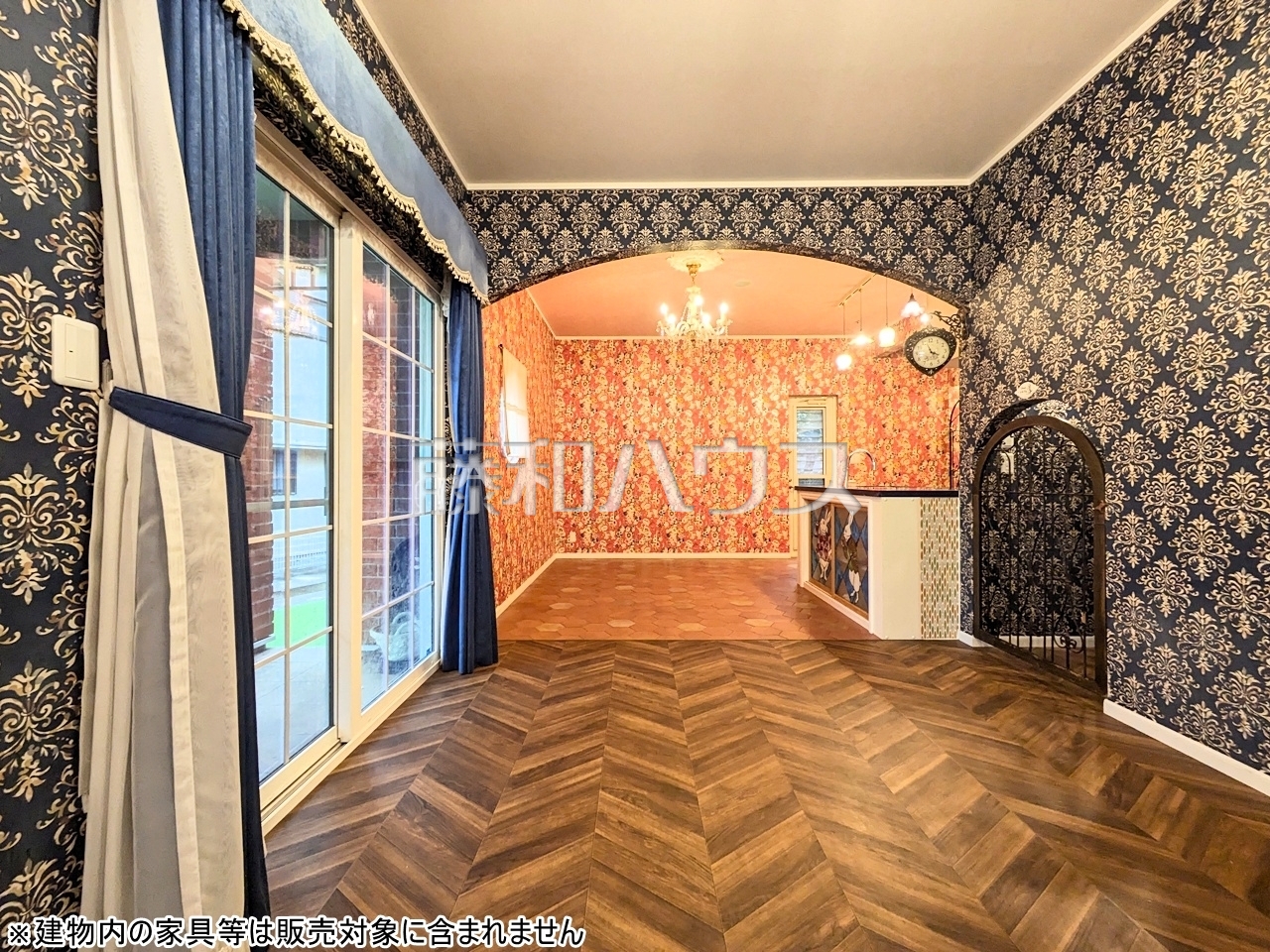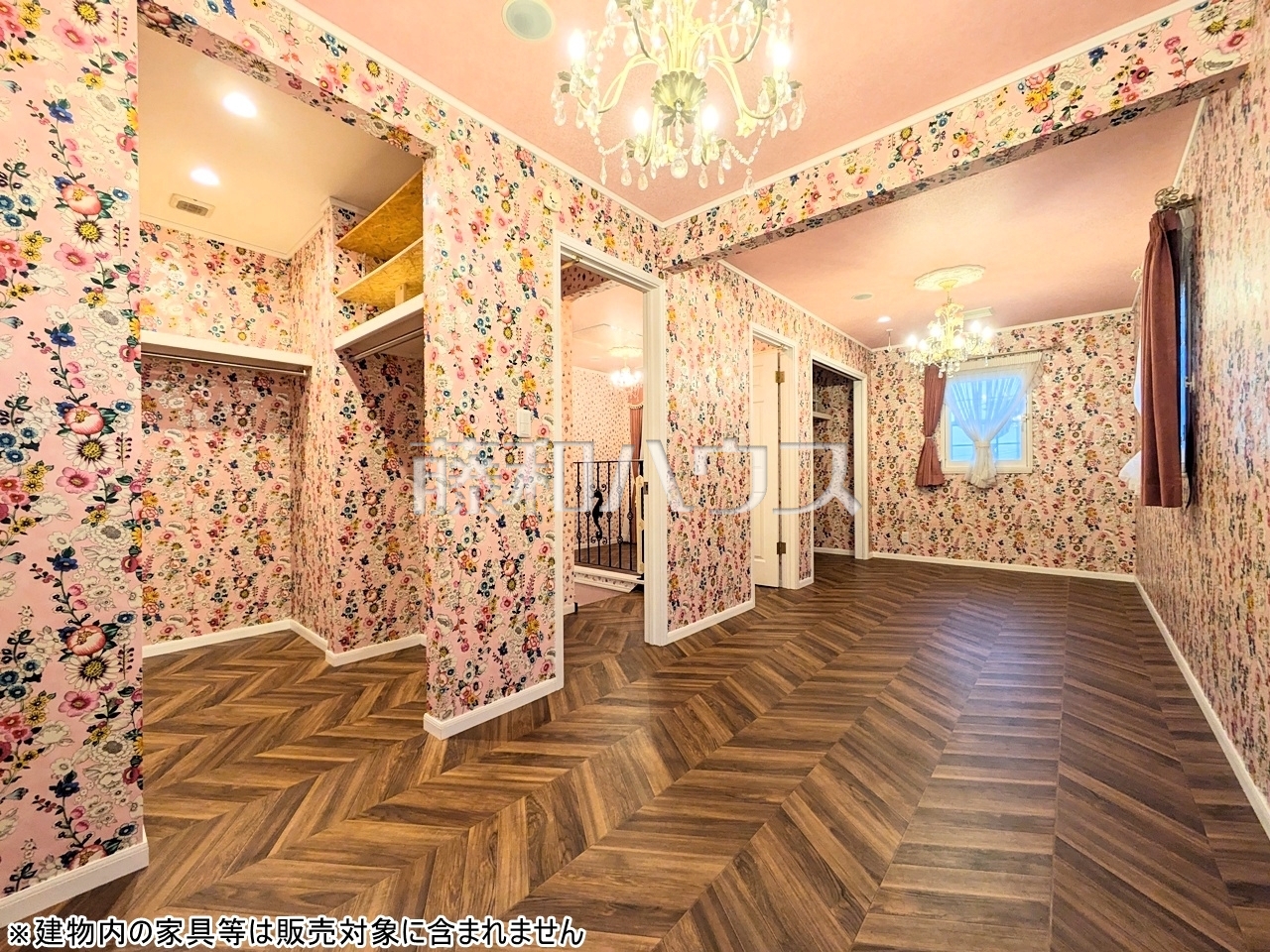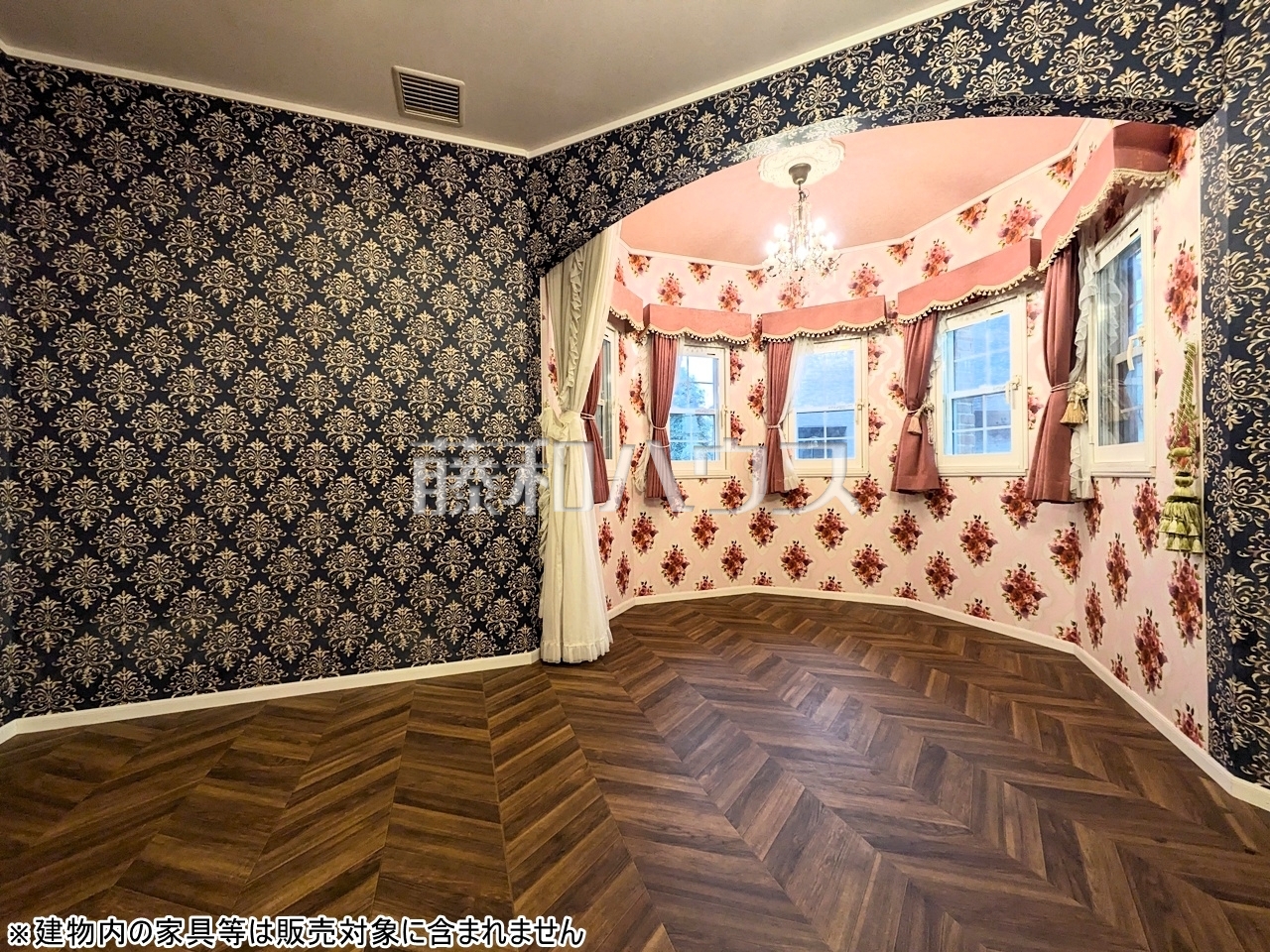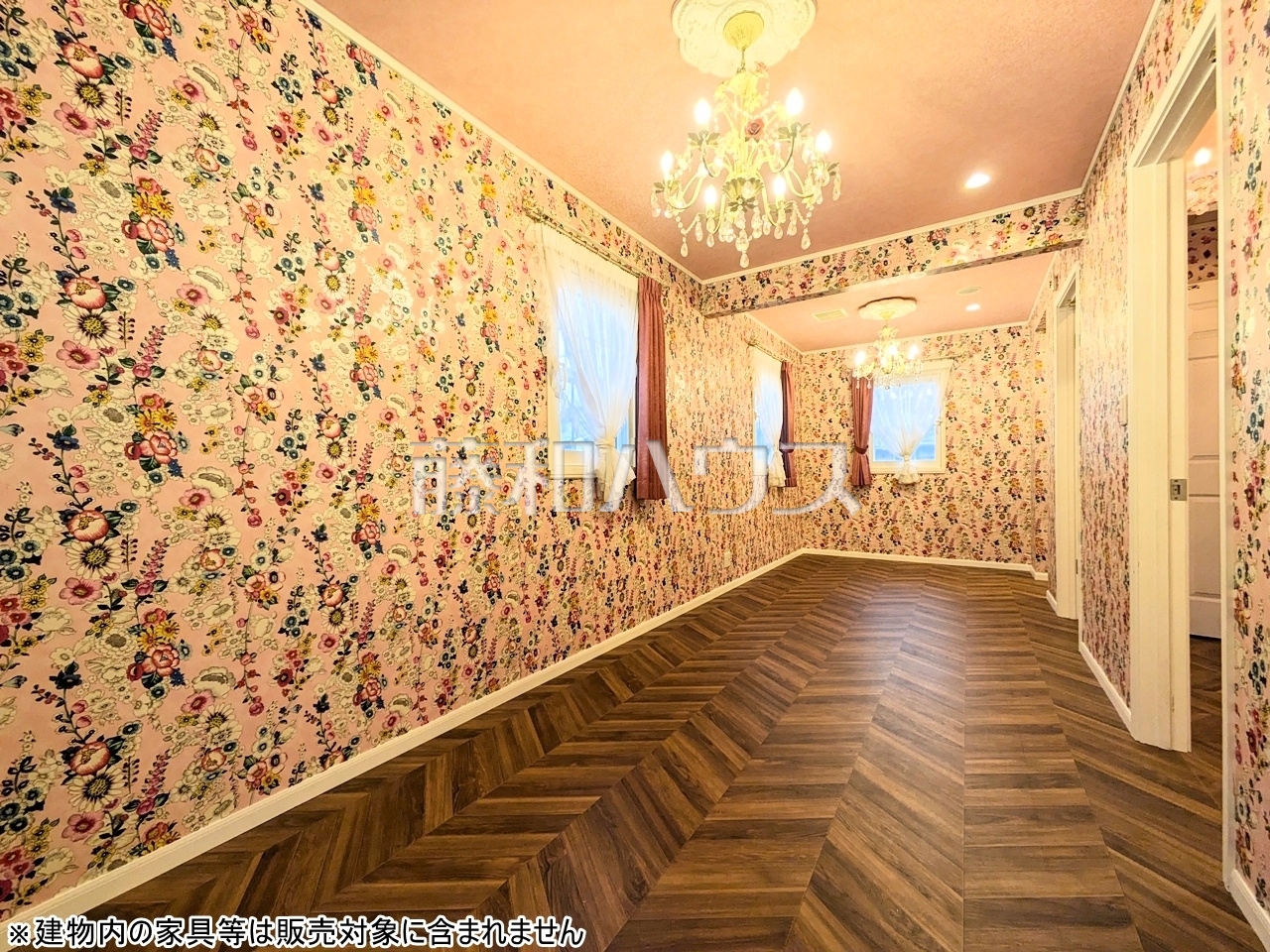 居室 【府中市八幡町2丁目】フローラルな壁紙の空間です。