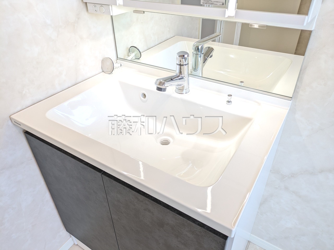 三面鏡付きの洗面台。鏡の裏にも収納があり、歯ブラシや化粧品等もすっきり収納できます。 【清瀬市中里5丁目】