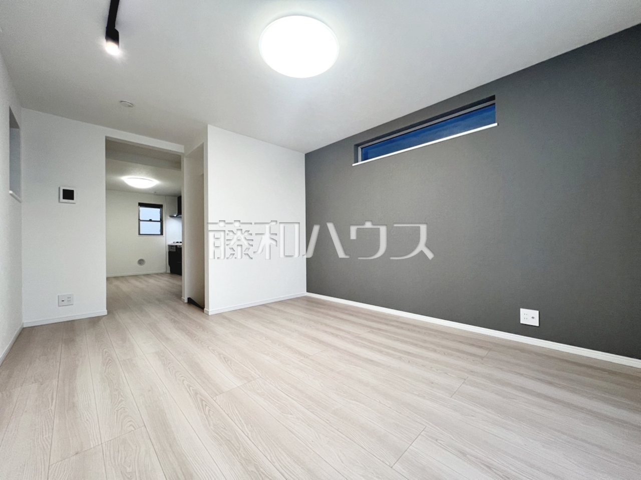 ≪リビング≫落ち着いた色味のアクセントクロスが、ワンランク上の空間を演出します。【世田谷区千歳台5丁目】