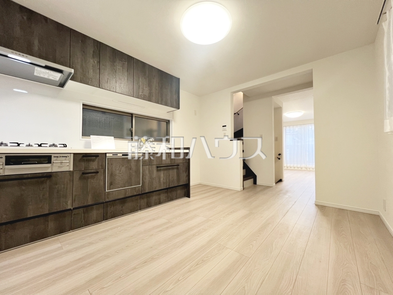 ≪キッチン≫ リビングとダイニングの位置をずらし、それぞれの空間で過ごす寛ぎを大切にしたプランです。 【世田谷区千歳台5丁目】