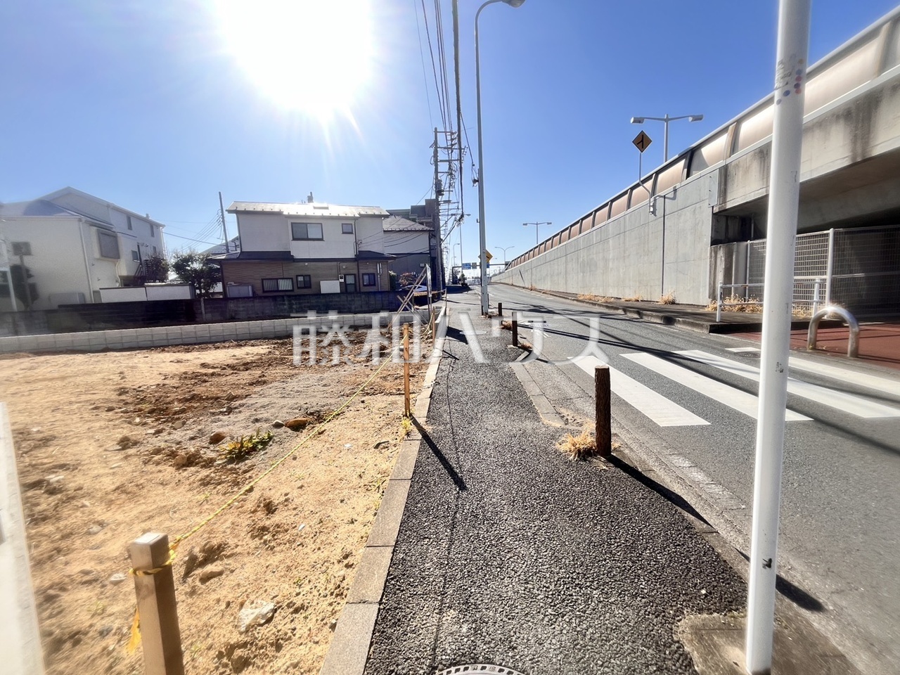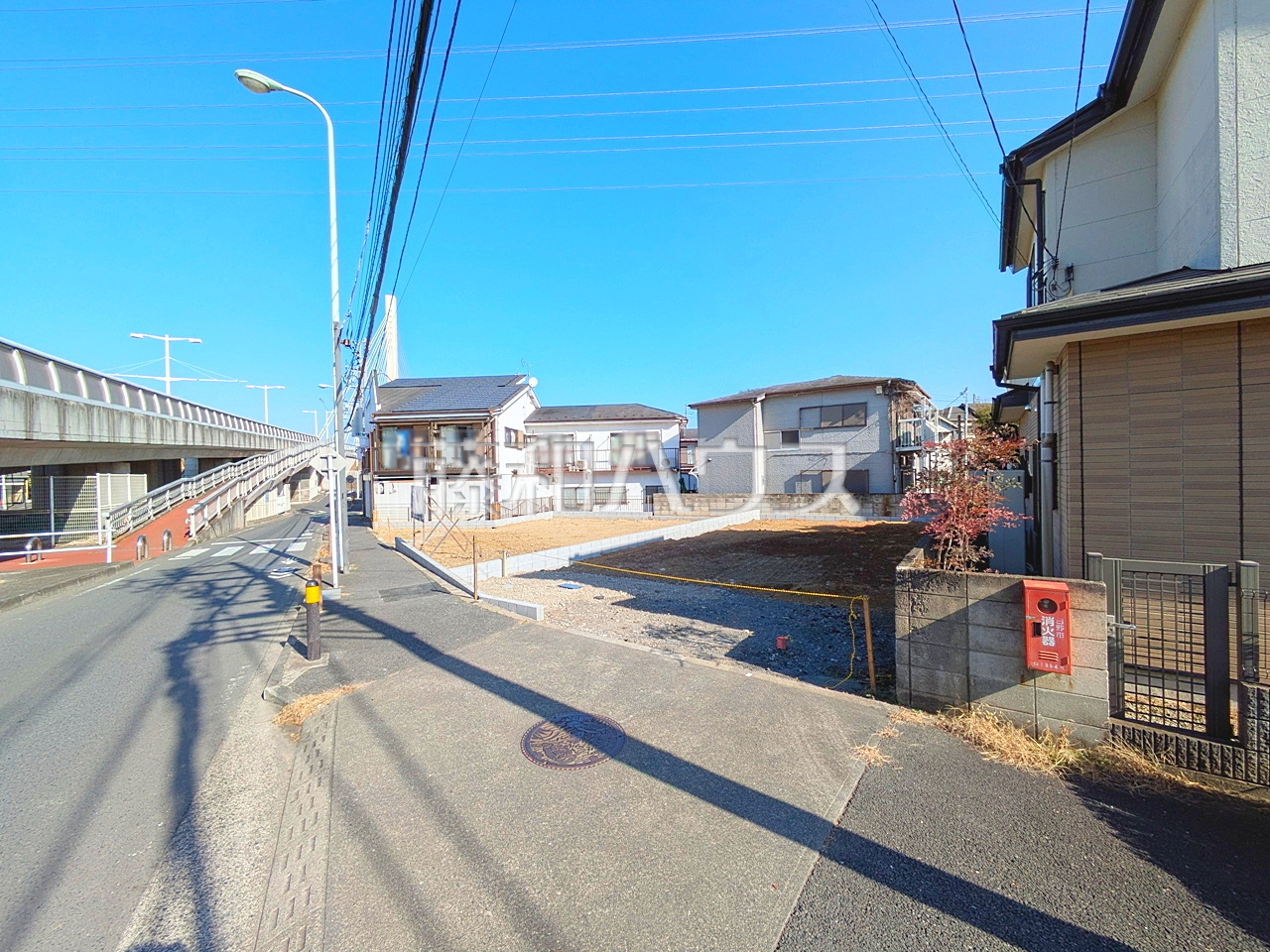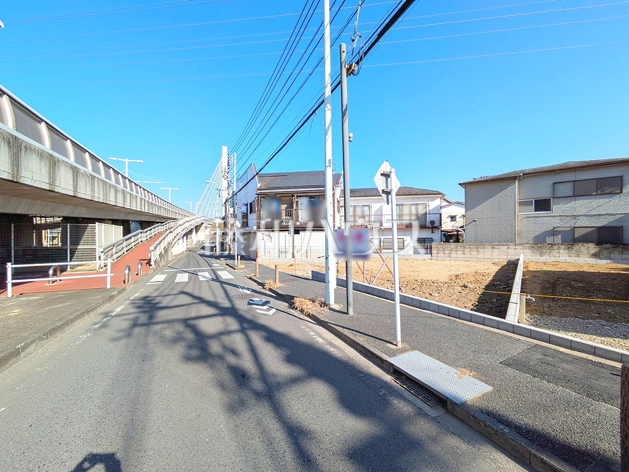 接道状況および現場風景 【日野市百草】 前面道路は歩道もあり、小さなお子様にも安心ですね。