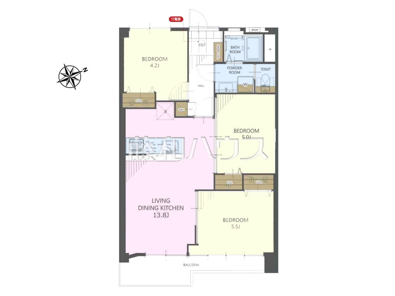 | 専有面積 | 61.92m²(壁芯) | バルコニー | 7.09m²(南東向き) |