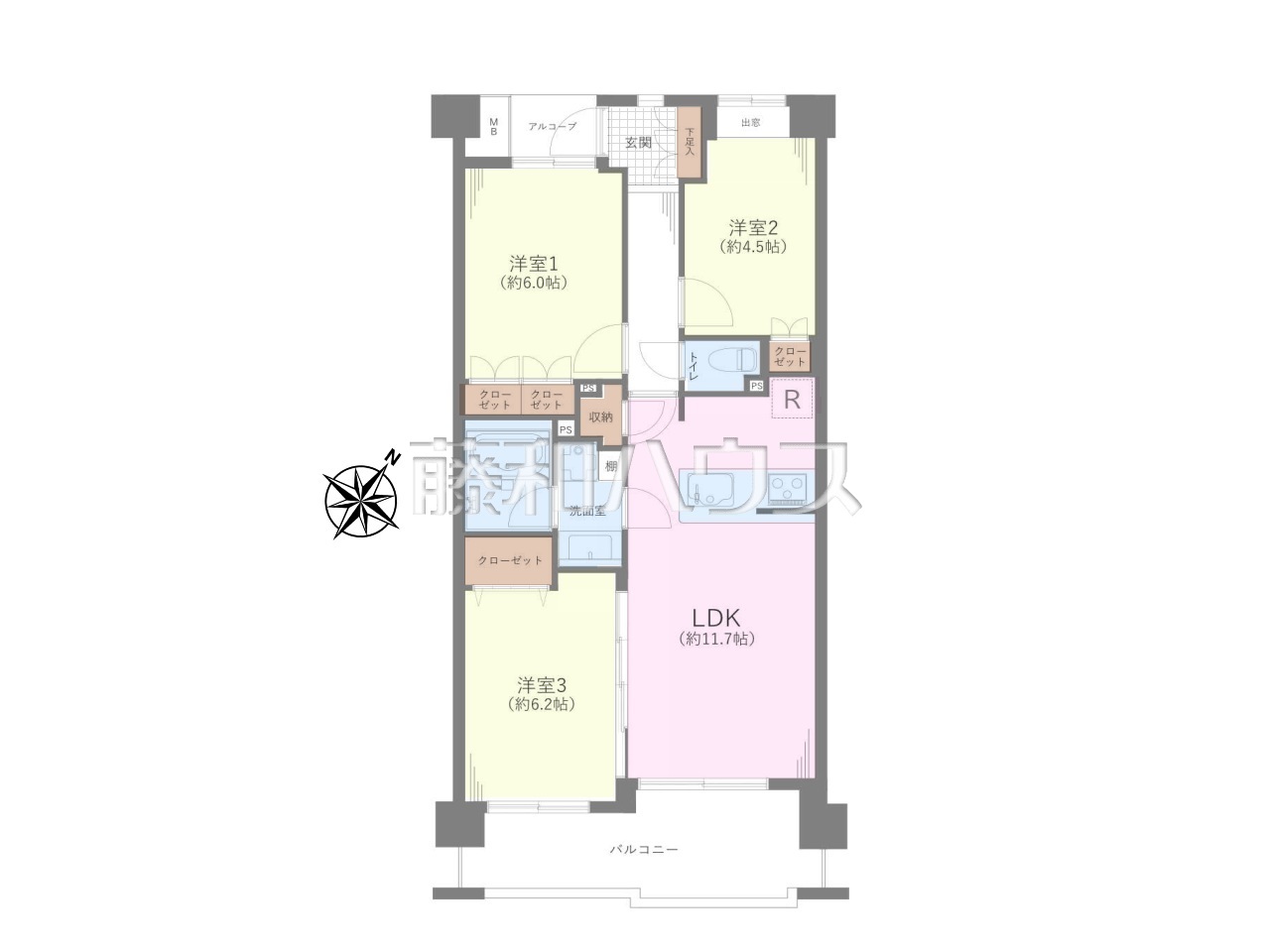 | 専有面積 | 64.14m² | 所在階 | 地上6階建 4階部分 |