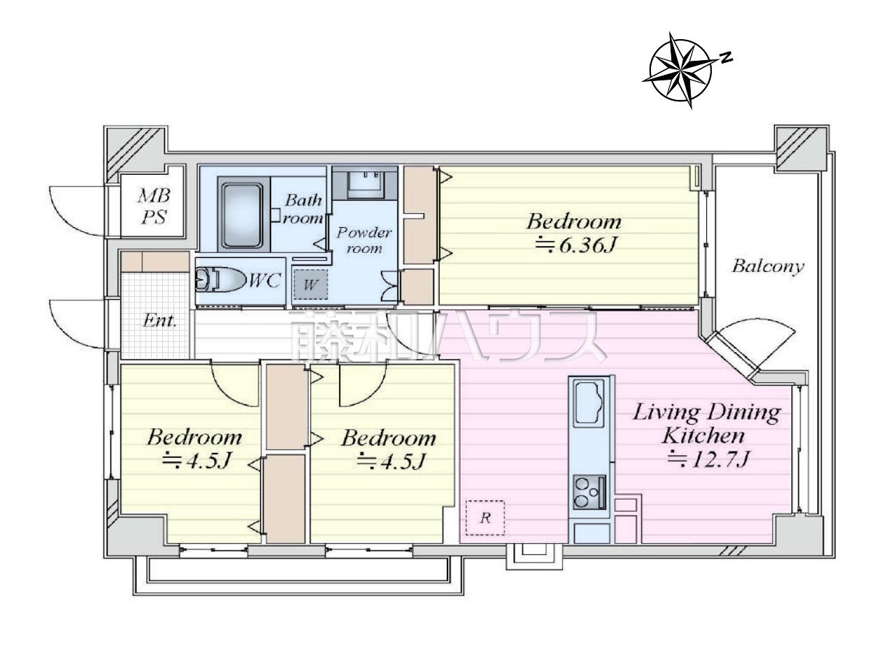 | 専有面積 | 66.26m²(壁芯) | バルコニー | 8.66m²(北向き) |