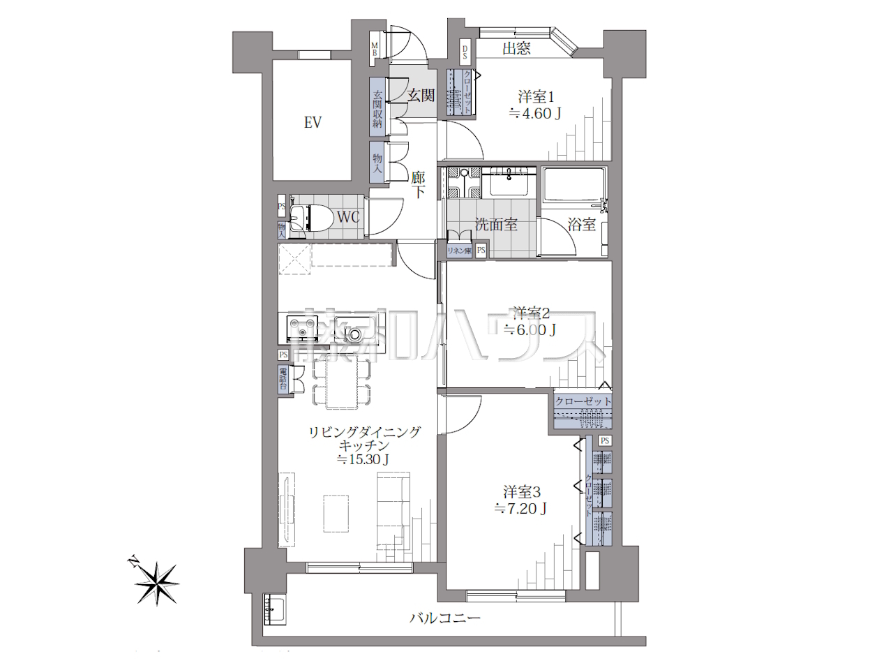 | 専有面積 | 73.29m² | 所在階 | 地上9階建 6階部分 |
