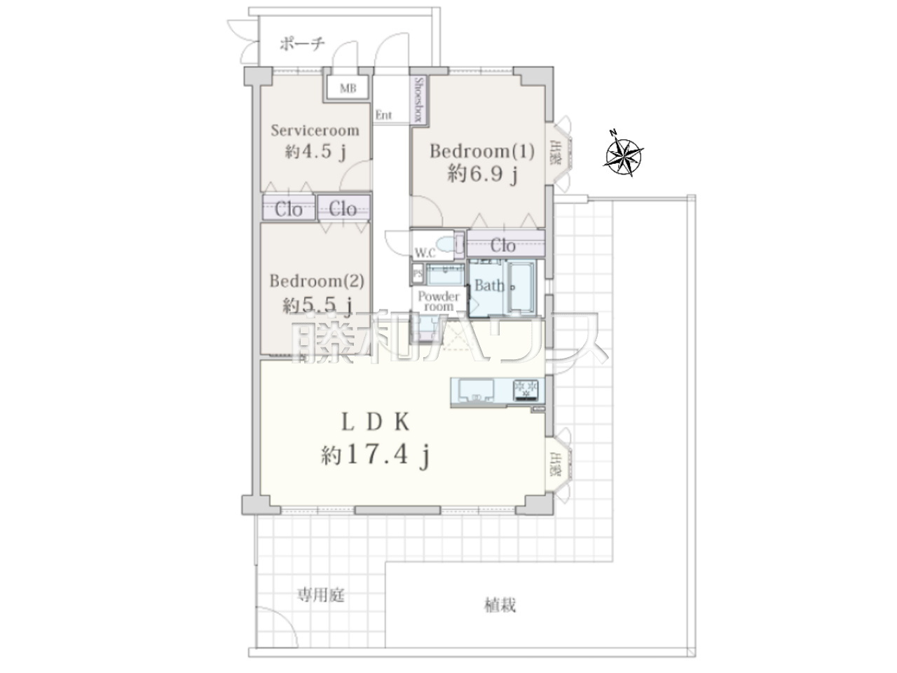 | 専用庭 | 56.2m² 使用料:2,000円/月 | 総戸数 | 34戸 |