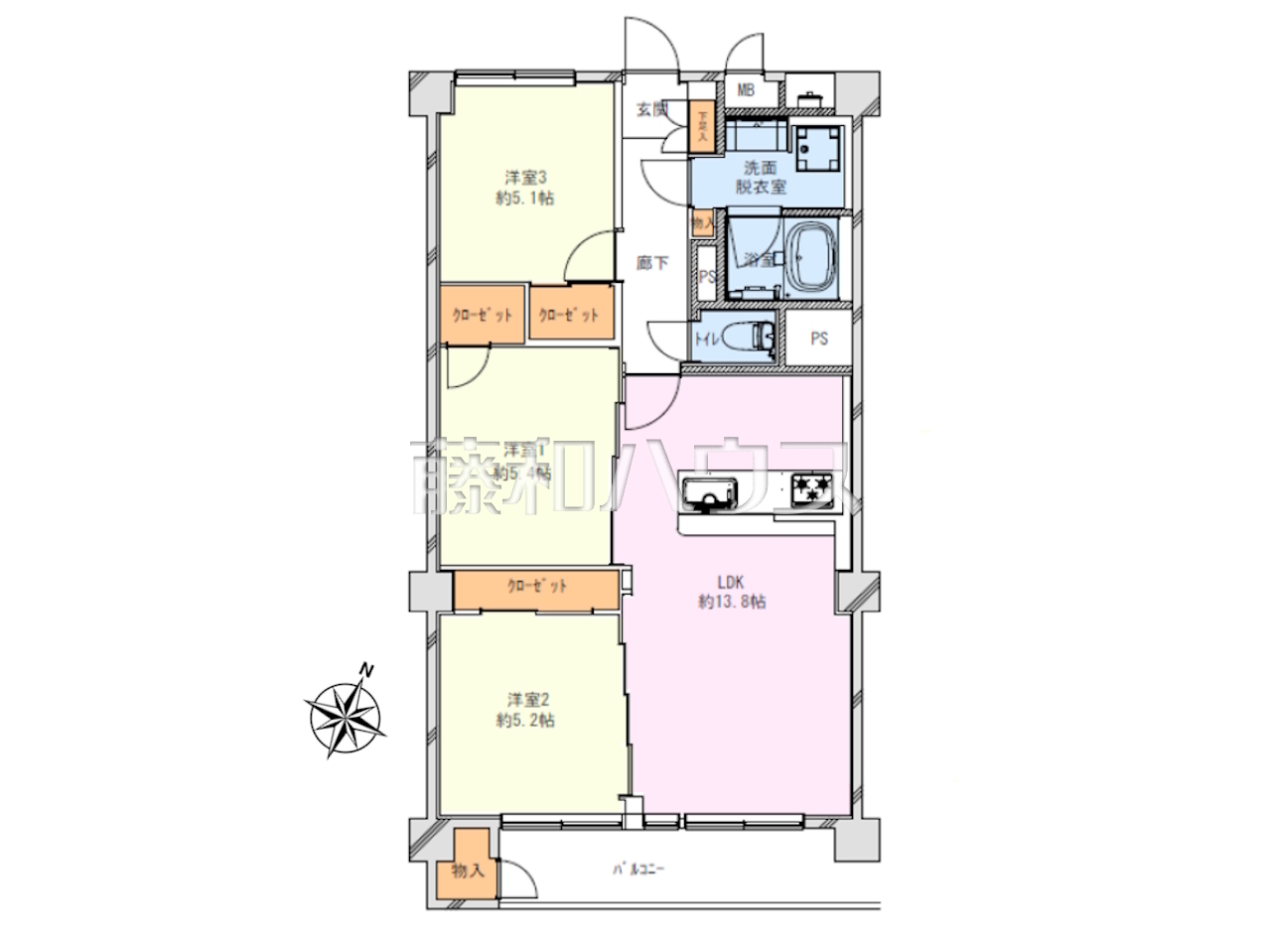 | 専有面積 | 69.28m²(壁芯) | バルコニー | 7.42m²(南東向き) |