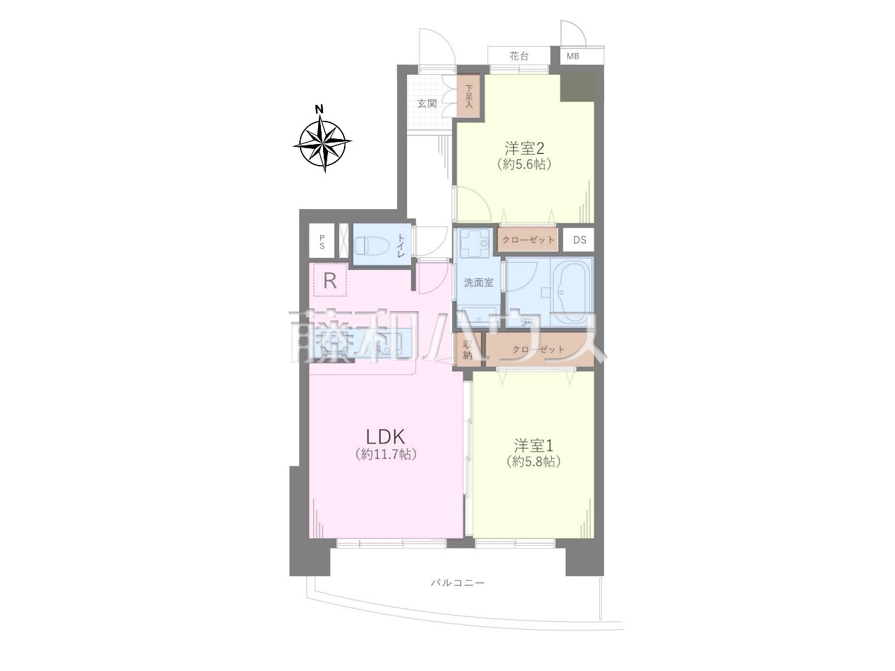 | 専有面積 | 54.44m²(壁芯) | バルコニー | 9.09m²(南向き) |