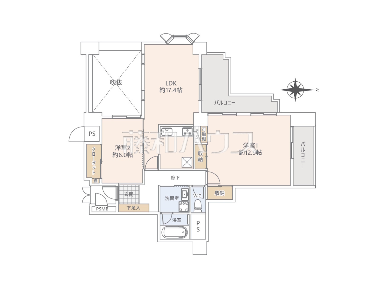 | 専有面積 | 89.61m²(壁芯) | バルコニー | 15.1m²(北向き) |