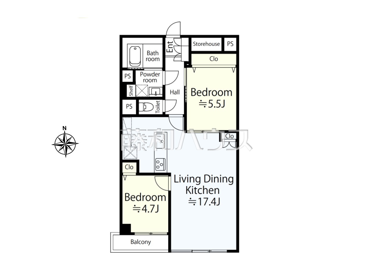 | 専有面積 | 59.74m² | 所在階 | 地上5階建 2階部分 |