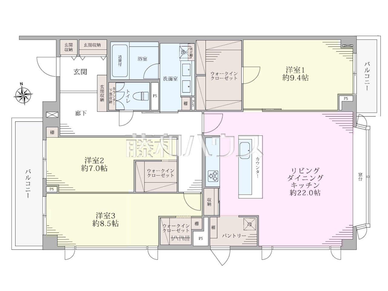 | 間取り | 3LDK(+3WIC、パントリー) | ||
