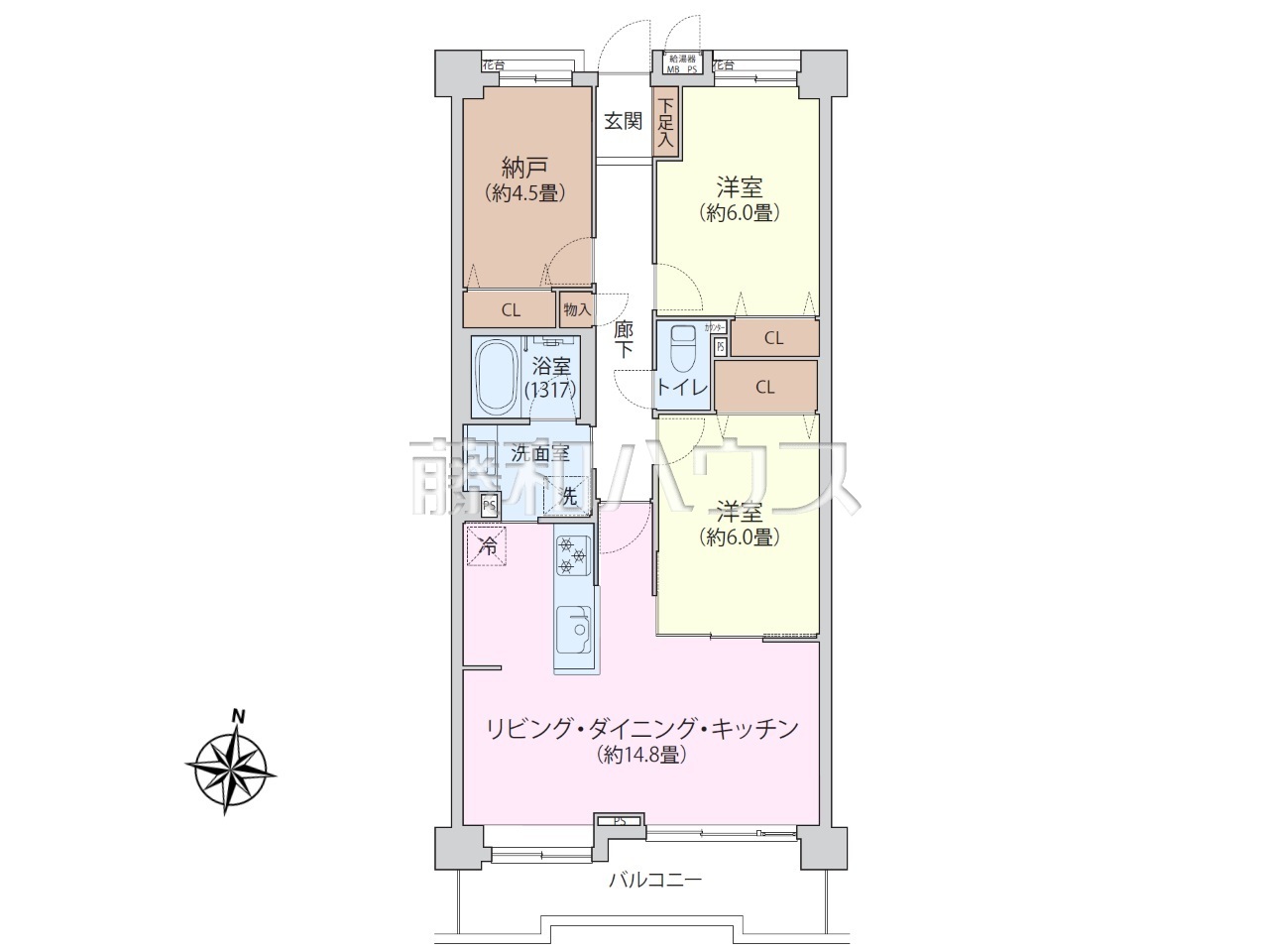| 専有面積 | 69.92m²(壁芯) | バルコニー | 8.96m²(南向き) |