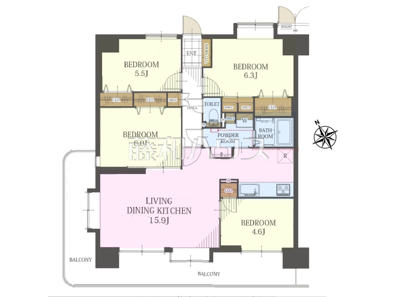 | 専有面積 | 81.31m²(壁芯) | バルコニー | 22.13m²(南向き) |