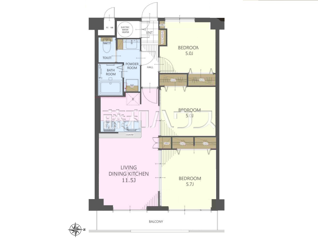 | 専有面積 | 63m²(壁芯) | バルコニー | 7.03m²(東向き) |