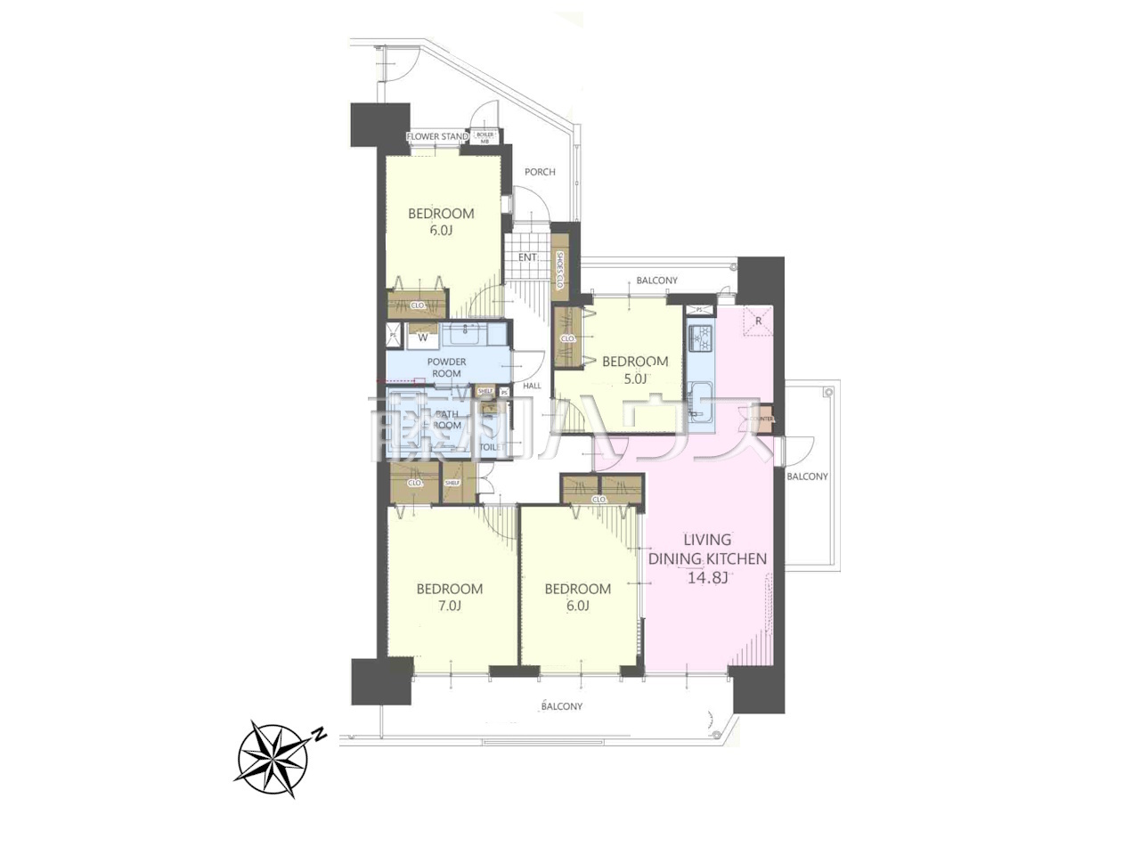 | 専有面積 | 86.87m²(壁芯) | バルコニー | 20.86m²(南東向き) |