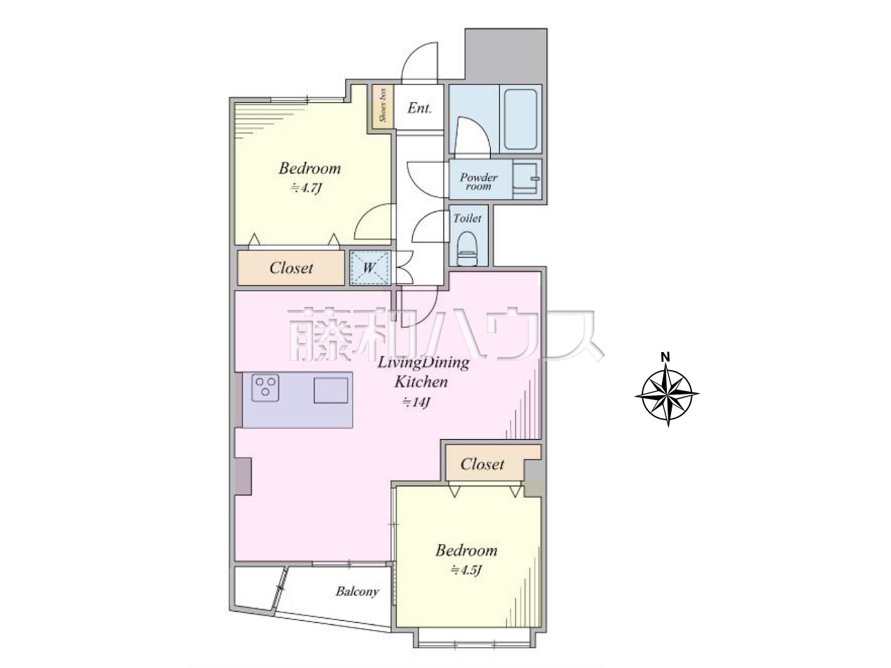 | 専有面積 | 54.54m²(壁芯) | バルコニー | 2.05m²(南向き) |