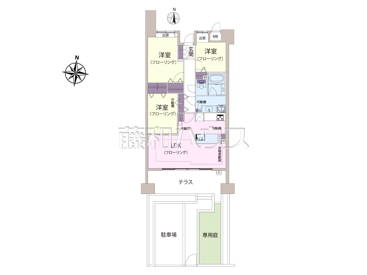 | 専有面積 | 79.23m² | 所在階 | 地上10階建 1階部分 |